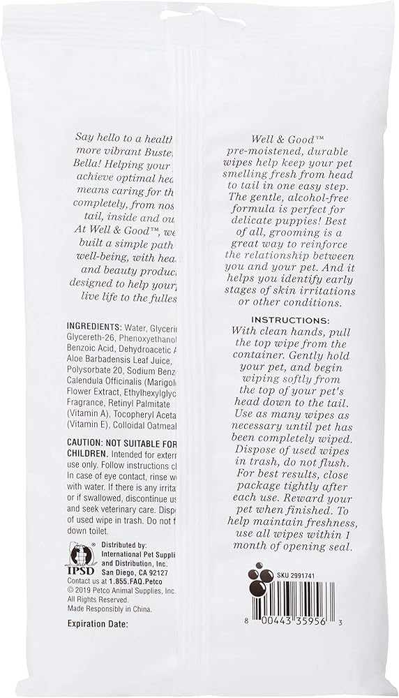 مناديل مبللة للعناية بالجراء ويل اند جود من بيتكو براند - عبوة من 100 قطعة، 100 قطعة