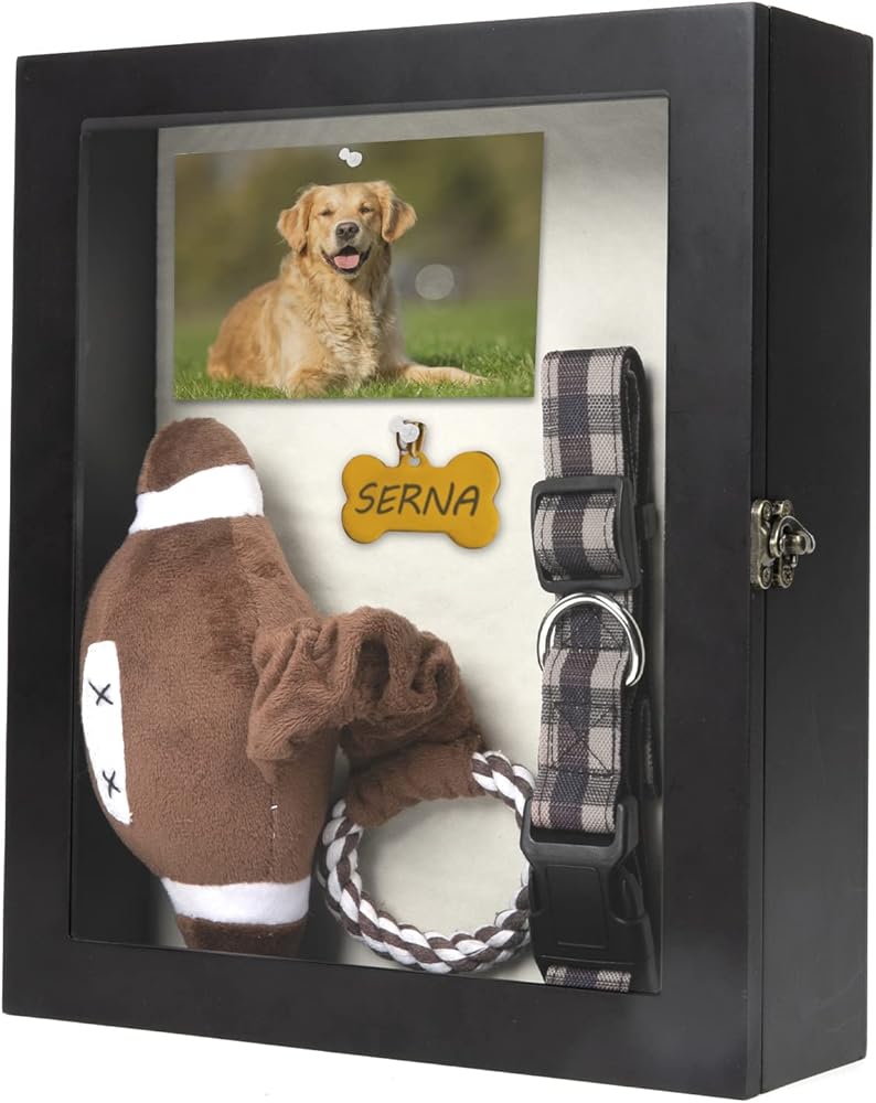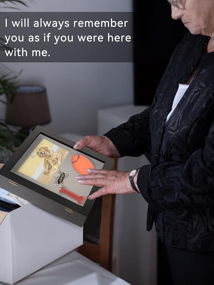 Timeless Pet Memorial Box: This dog picture frame is a great healer when you lose your pup, you can put photos, paw prints, collars, favorite toys of your deceased pet inside, it's a good reminder for you to have to say goodbye to your beloved puppy baby.