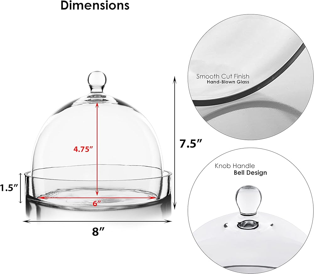 Quality - Hand-blown crystal clear glass not machine made. Crafted with thick glass for the perfect glass display cover.