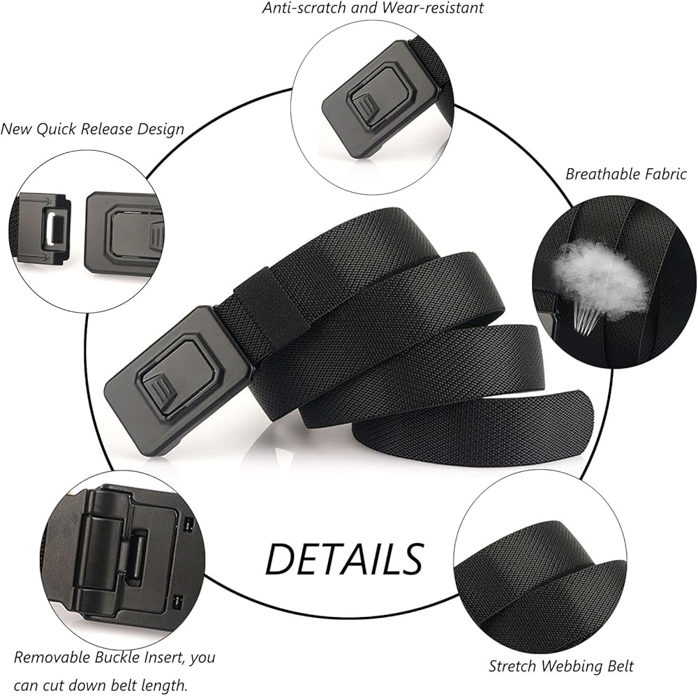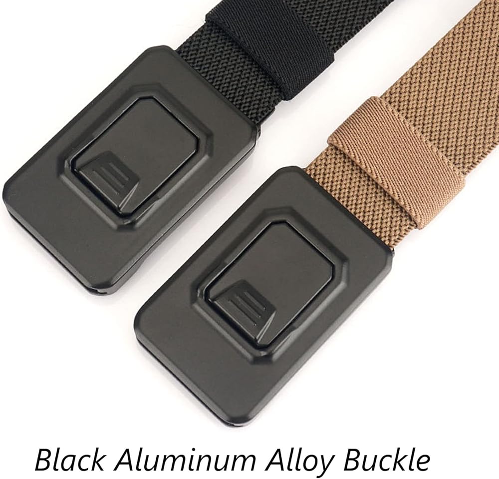 تصميم سريع الفك - إبزيم الحزام المرن للرجال مصنوع من سبائك الألومنيوم، خفيف الوزن وناعم. اضغط على تصميم الزر الذي يساعد المستخدم على سهولة الفتح والإغلاق.