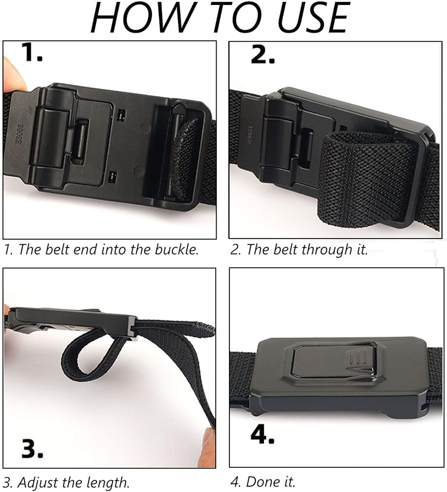 سهل الاستخدام - حزام عمل بعرض 1.34 سم للرجال يسهل تمريره من خلال معظم حلقات البنطال، الحد الأدنى لعرض الإبزيم هو 1.5 سم، عندما تقوم بضبط الطول المناسب، يمكنك بسهولة ارتداؤه وخلعه دون إزالة طرف الحزام على الإبزيم.