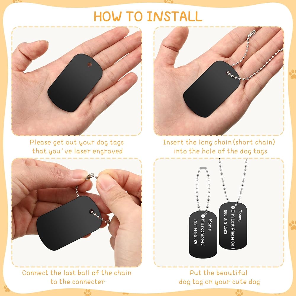 The set of dog metal tag has sufficient quantity and reliable quality, serviceable and solid, and can work for a long time, which can be a good tool to work as the ID tag to show others the information about your dog, which is helpful when your dog is lost.