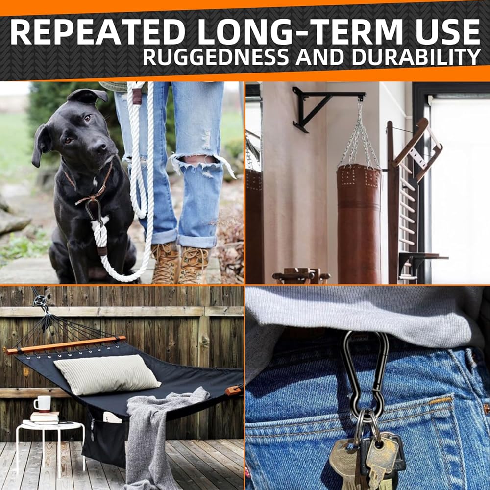 Multiple Uses: Carabiner hook Ideal for a variety of indoor and outdoor activities for camping, hiking, trekking, hunting, travel, backpacking, fishing, cycling, you can also use it as a carabiner keychain or pet leash