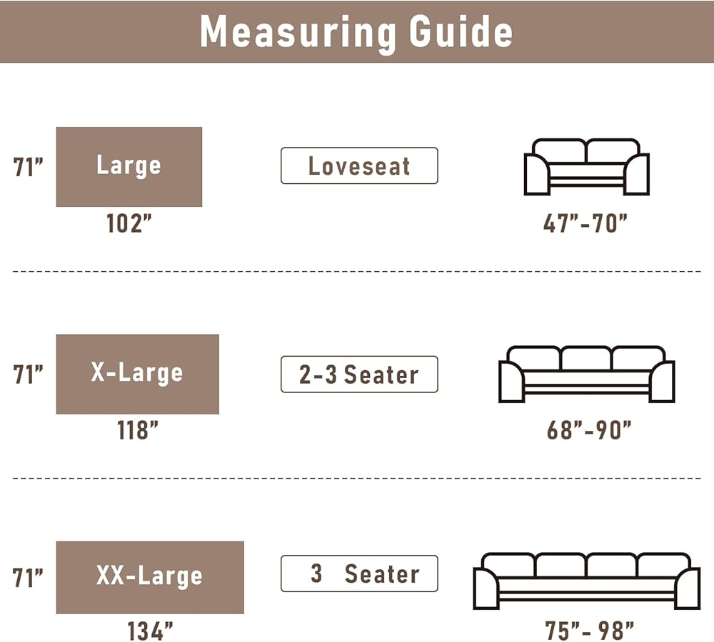 ❤【المقاس】: كبير: 71 بوصة × 102 بوصة، يناسب الأريكة من 47 بوصة إلى 60 بوصة؛ X-Large: 71 بوصة × 118 بوصة، يناسب الأريكة من 60 بوصة إلى 80 بوصة؛ XX-Large: 91 بوصة × 134 بوصة، يناسب الأريكة من 80 بوصة إلى 95 بوصة. مناسبة للأرائك المختلفة، مثل الأريكة المقسمة، والأريكة على شكل حرف L، والأريكة بدون ذراعين، وأريكة الفوتون، والأريكة العادية. ملاحظة: شراء اثنتين يمكن أن يكون رائعًا للأريكة على شكل حرف L.