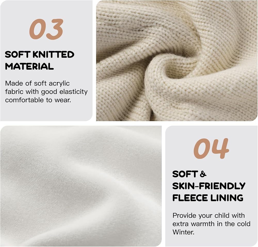 طبقة مزدوجة للدفء وتصميم بوم بوم لطيف - مجموعة وشاح صغير شتوي قطعة واحدة مع بطانة من الصوف الدافئ، مما يسمح لطفلك بالاستمتاع بأقصى قدر من الدفء. تأتي قبعة الوشاح الصغيرة مع كرات لطيفة من الفرو الصناعي، والتي يمكن أن تجعل طفلك يبدو لطيفًا وعصريًا.