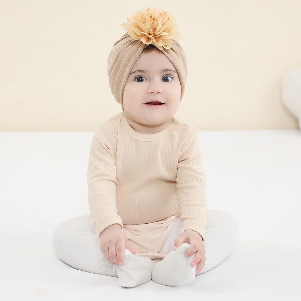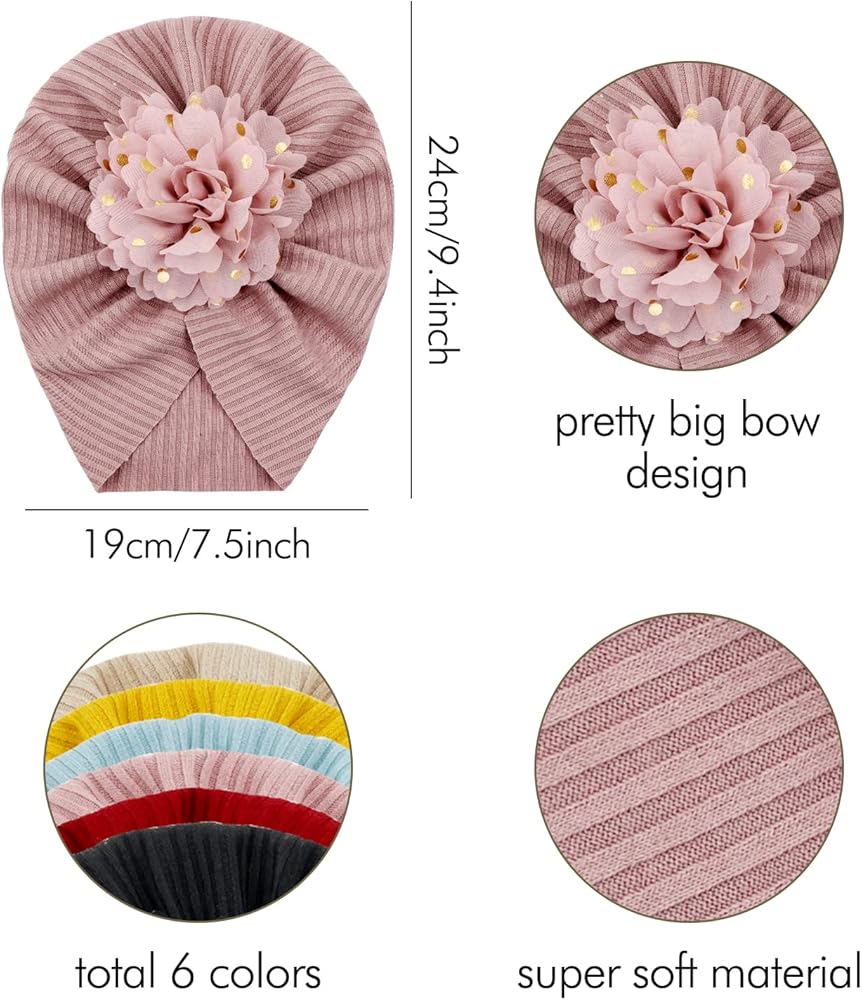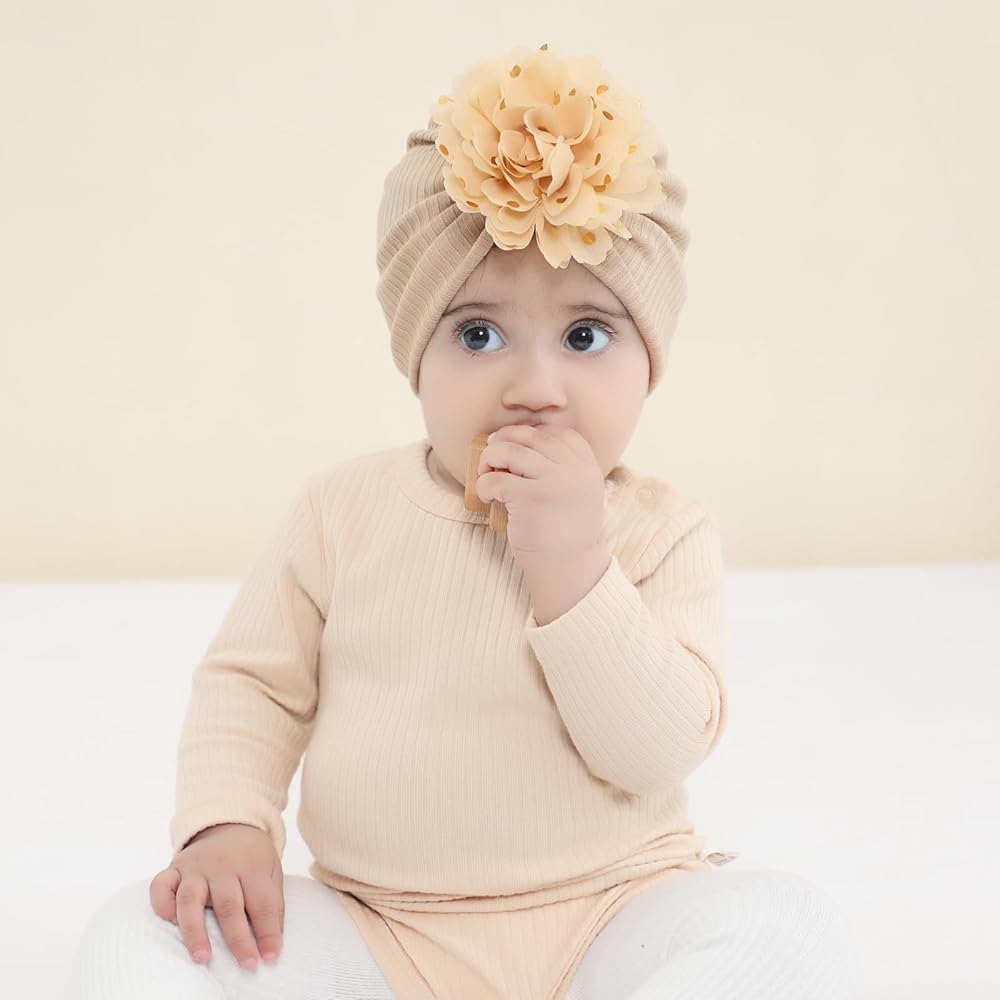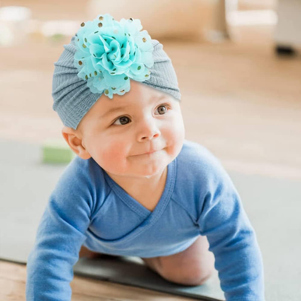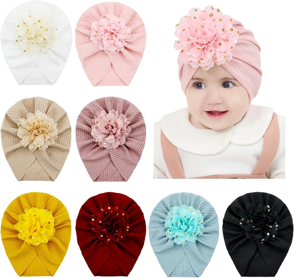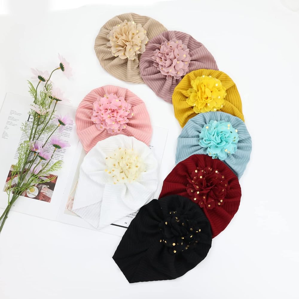 سيناسي 8 عبوات كبيرة الشيفون زهرة عمامة قبعات الزهور قبعات بيني بونيز بيني أغطية الرأس للأطفال الفتيات الرضع والأطفال الصغار