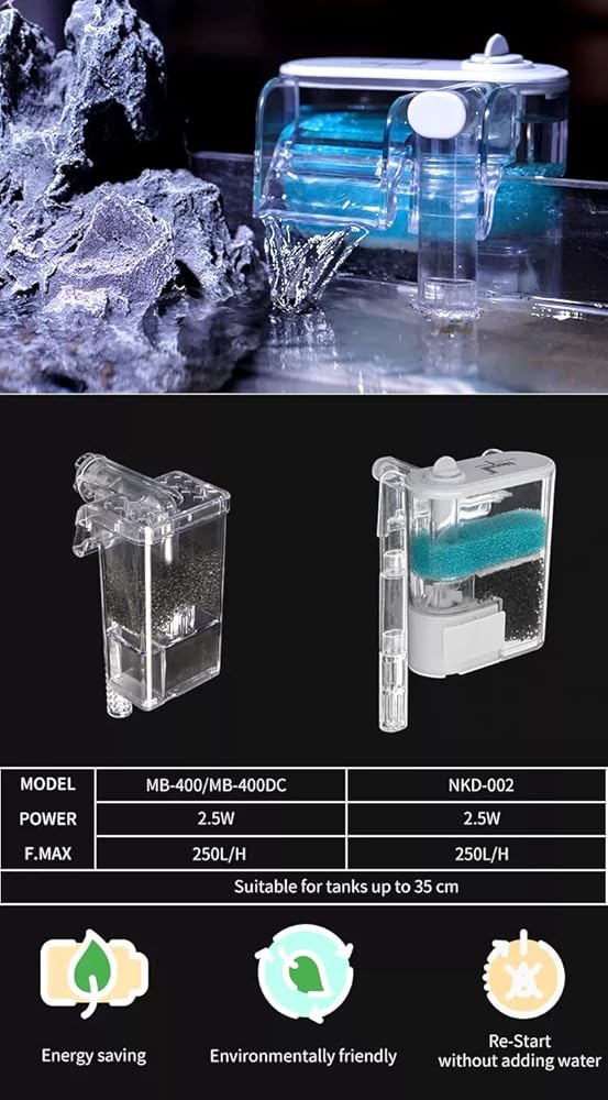 فلتر كيوب ون ميني نانو شفاف من بيتز لايف وورلد لحوض السمك الصغير والوعاء | 2.5 واط | 250 لتر/ساعة