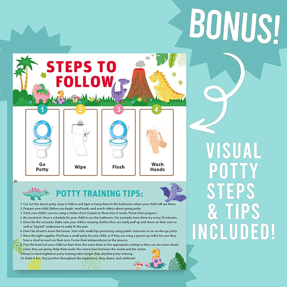 [Train and Reward]: This would be a great reward system, every time your kids complete all the steps on the potty training sheet, you can reward them with a cute dinosaur sticker and put it on the reward sheet, when the kids get a certain number of stickers, they can use these stickers to exchange for the gift they want.