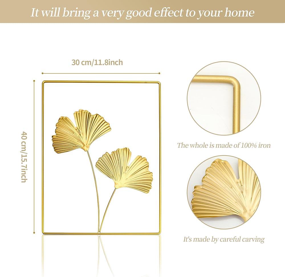 【Great Quality】: Made of premium iron and the frame is durable vivid, luxurious, easy to maintain,anti-rust and wear-resistant. There are 2 proper-sized holes at the top of the back for easy hanging. No assembly required. The 3D metal leaves are tough and elastic, Please feel free to adjust it If there is any deformation.