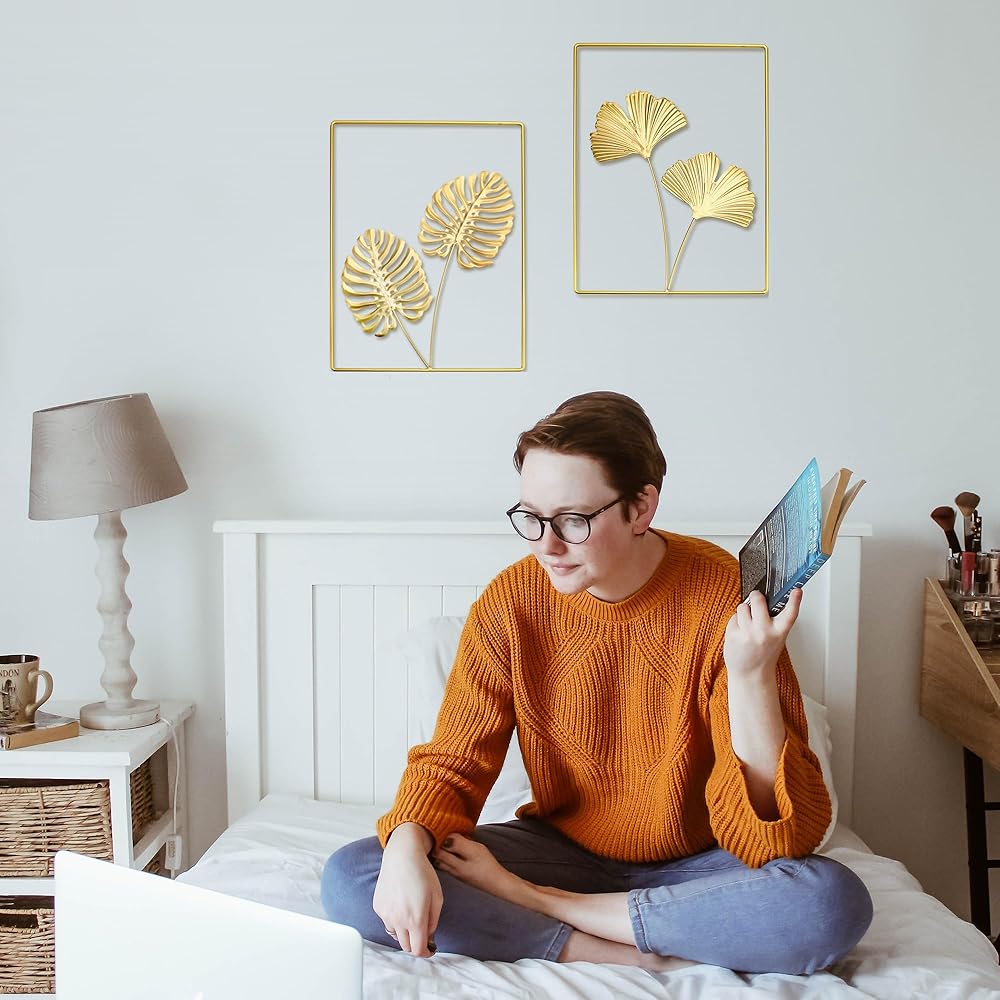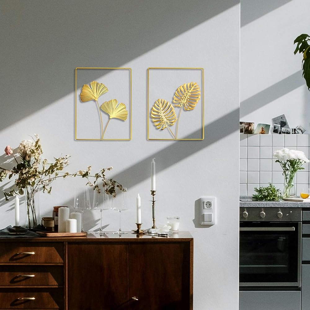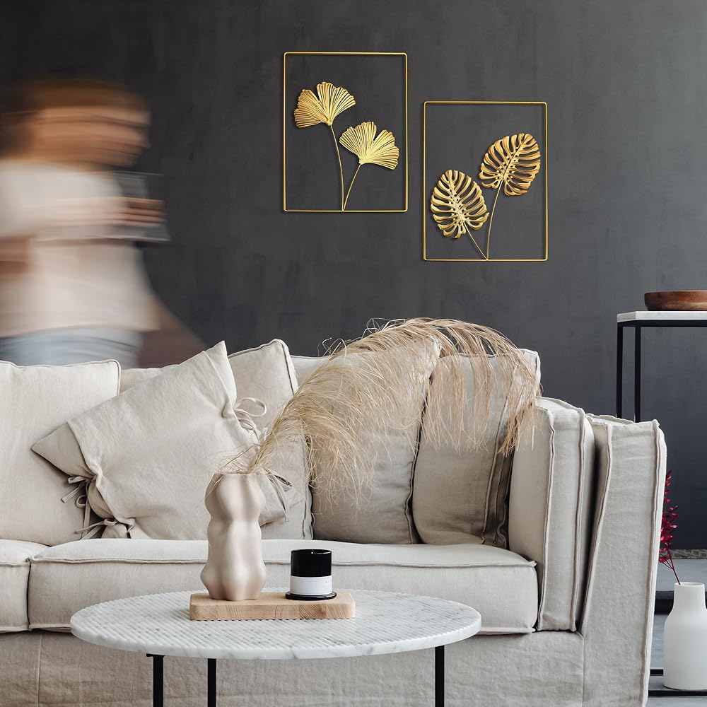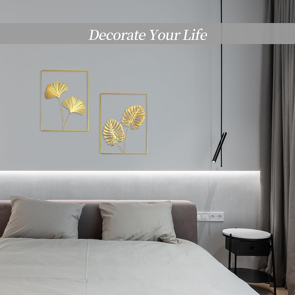 【What you get】:16* 12'' , set of 2 gold wall decor,including monstera deliciosa leaf and ginkgo leaf.We have prepared non-trace nails, you do not need to find another nail for this product