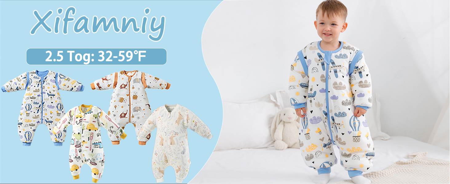 【تصميم إنساني】تم تصميم بطانية الأطفال بأكمام واسعة وطويلة للسماح بتدوير الهواء، مما يقلل من خطر ارتفاع درجة الحرارة. كما أن تصميم الساق المقسمة يسمح للطفل بالتحرك بحرية، مما يجعله أكثر راحة ويضمن نموًا طبيعيًا للورك.