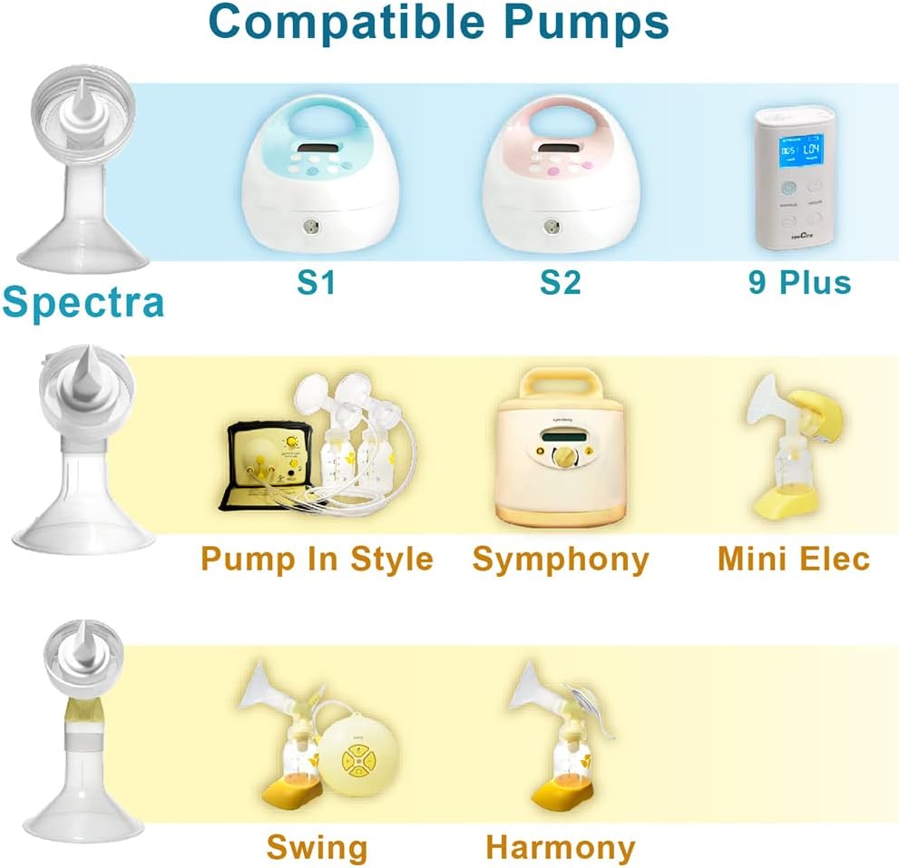 • المضخات المتوافقة: مضخة الثدي PUMP IN STYLE، وSWING، وHARMONY، وSYMPHONY، وMINI ELECTRIC، وSPECTRA S1، وS2، و9 Plus، وDEW 350. انظر الصور التوضيحية لمضخات الثدي المتوافقة. ليست أجزاء مضخة سبكترا الأصلية. ليست ملحقات Spectra S1 الأصلية