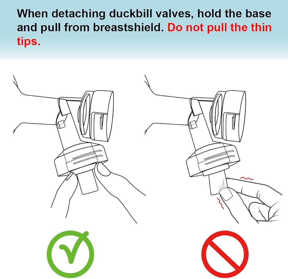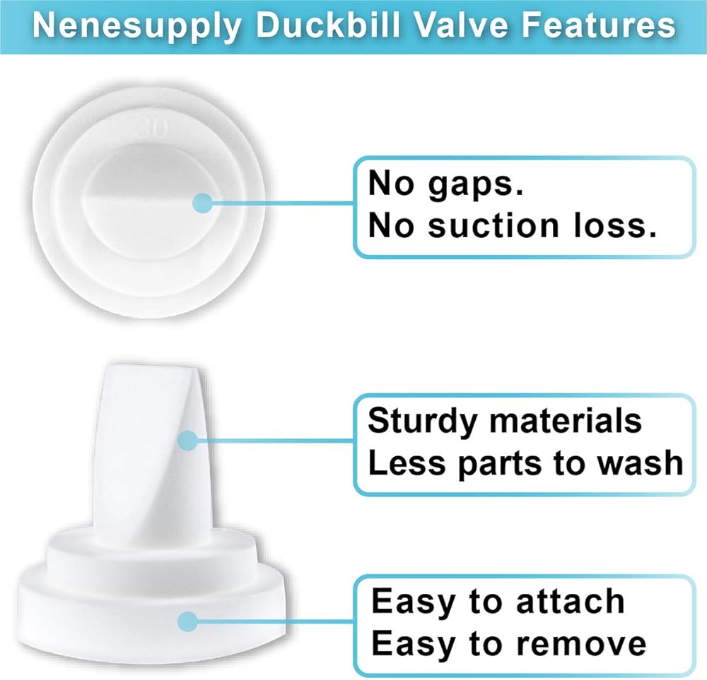 • يحل أحد صمامات منقار البط محل الصمام والغشاء. لا حاجة لشراء أغشية إضافية. عدد أقل من أجزاء المضخة التي يجب غسلها وتعقيمها وتجميعها.