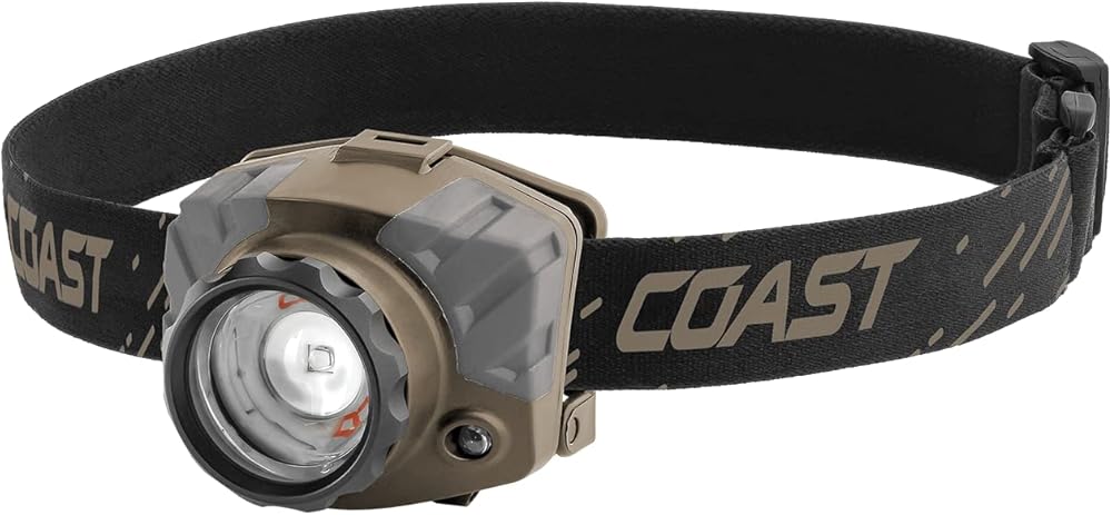 مصباح أمامي LED مركّز بالبطاريات ومشبكات القبعة الصلبة من Coast FL88 615 Lumen ثلاثي الألوان (أبيض / أحمر/أخضر) ، أرضية داكنة مسطحة