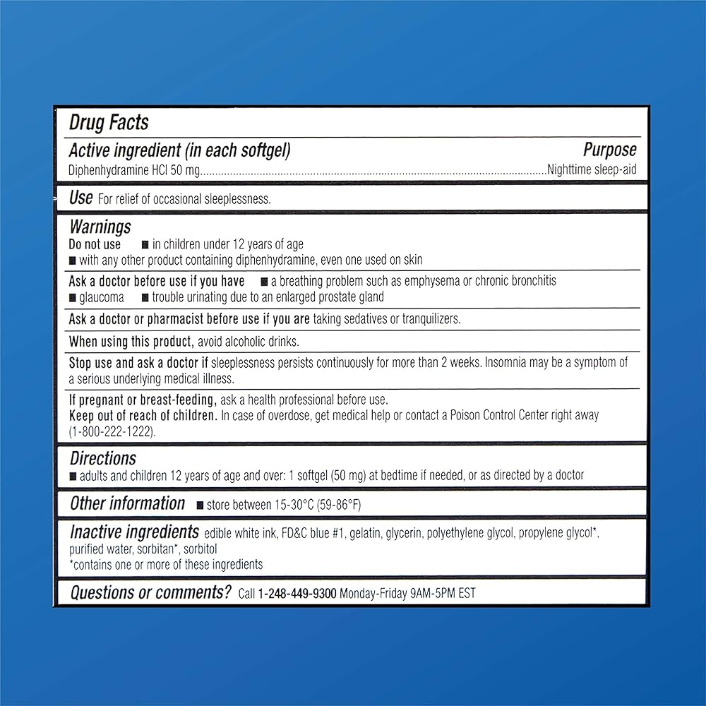 مساعد النوم ذو القوة القصوى من كواليتي تشويس، مساعد النوم الليلي ديفينهيدرامين HCI 50 مجم، مساعد نوم غير معتاد للأرق العرضي، كبسولات هلامية سهلة البلع، 32 زجاجة