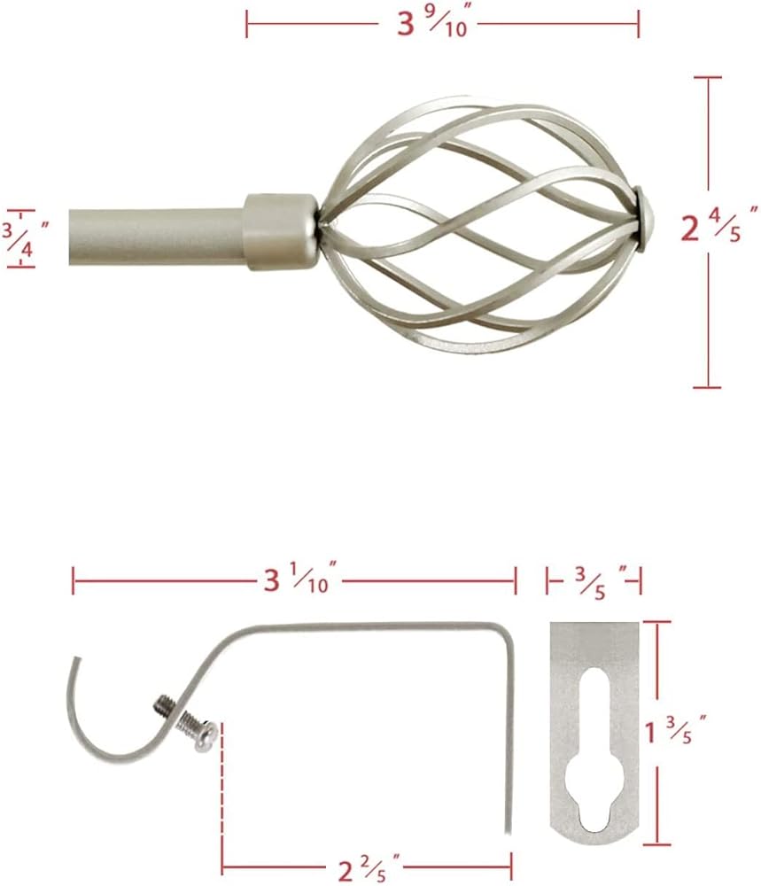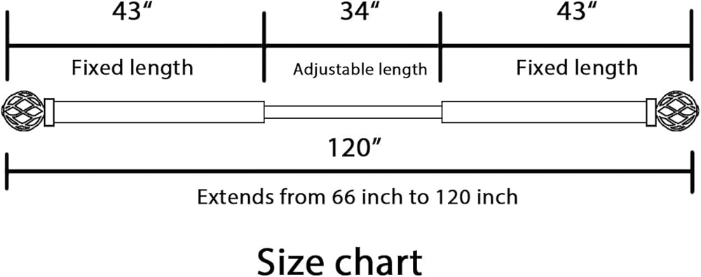 طول قابل للتعديل: قضيب ستارة مزخرف بقطر 3/4 بوصة يمكن تعديله من 66 إلى 120 بوصة