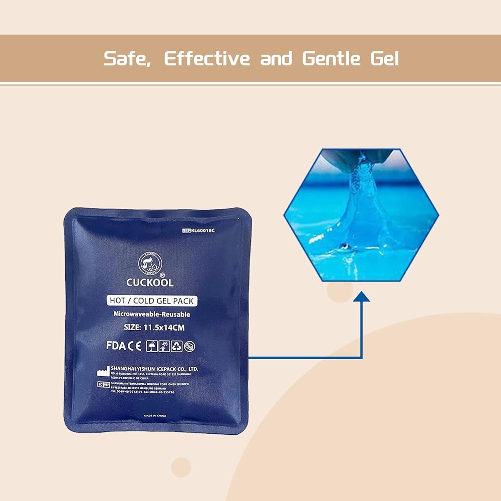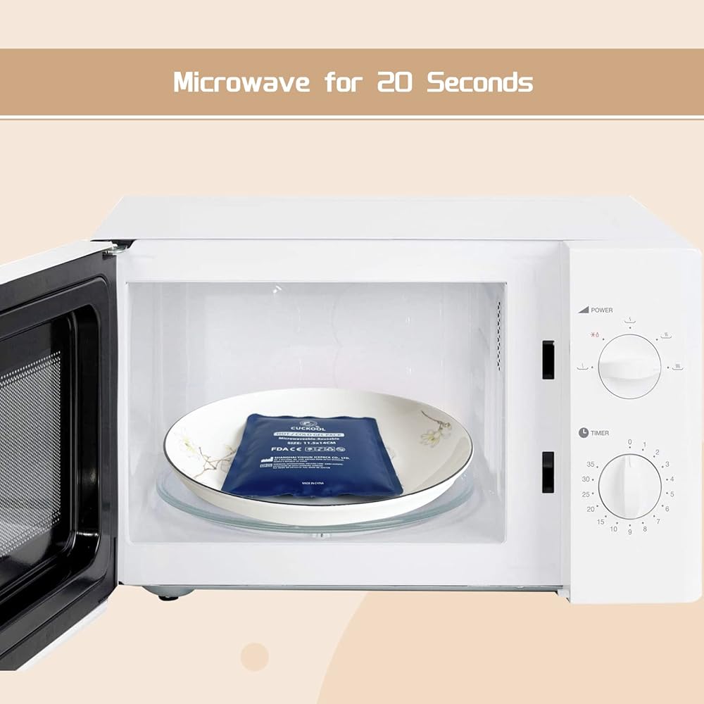 محشو بجل طبي غير سام قابل للتسخين ولا يسبب الحساسية للبشرة، ويتميز بتوصيل حراري ممتاز، ويمكن تسخينه بسرعة بواسطة الميكروويف في بضع ثوان، ويبقى مرنًا عند التجميد.