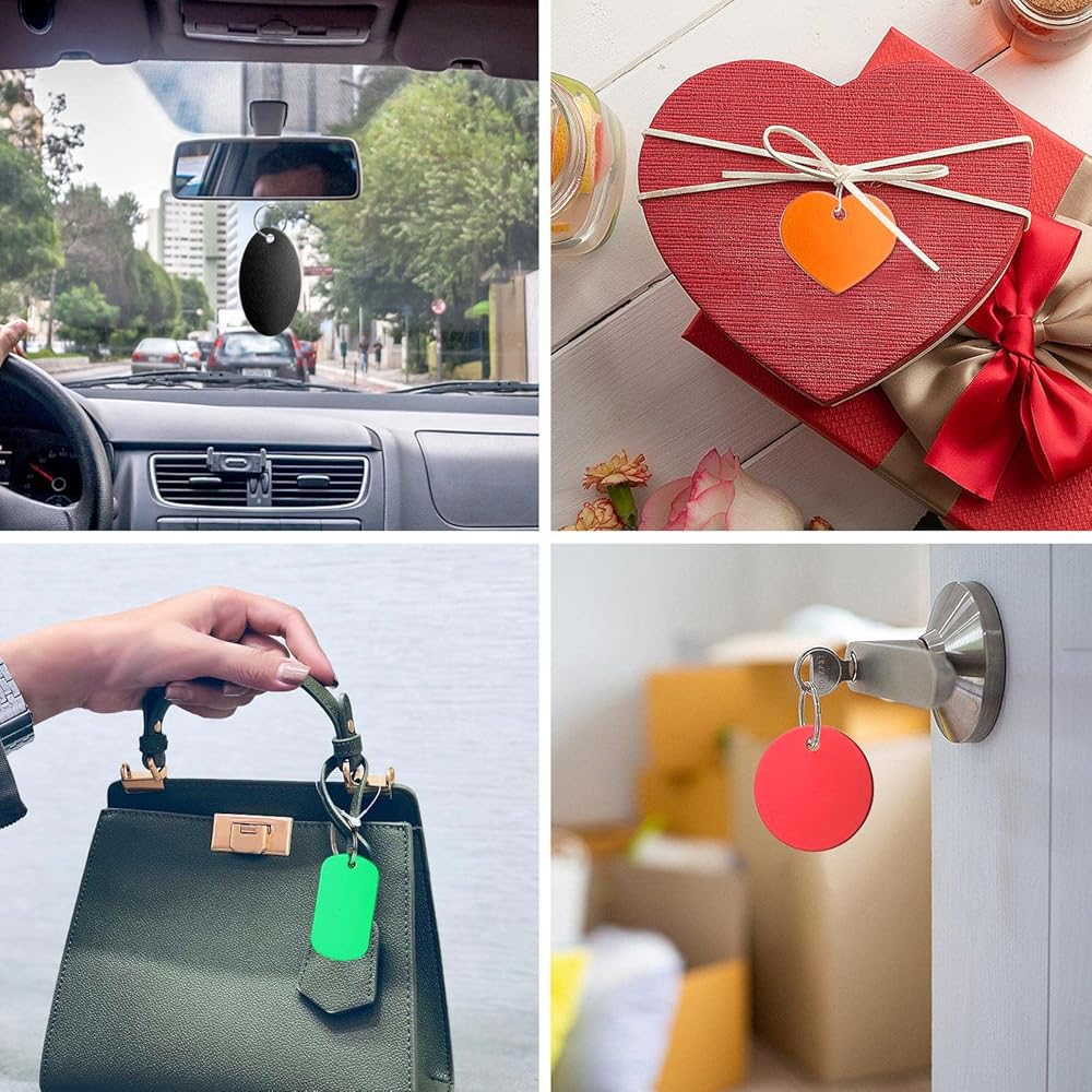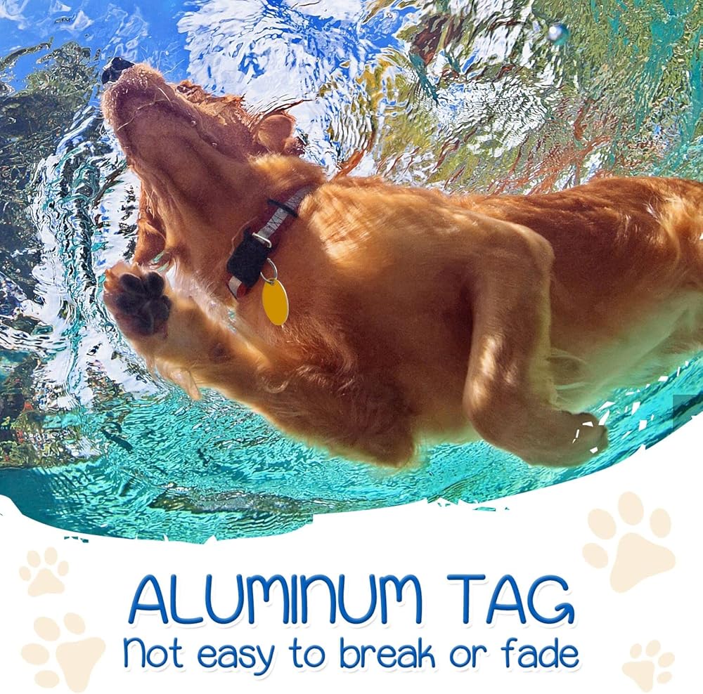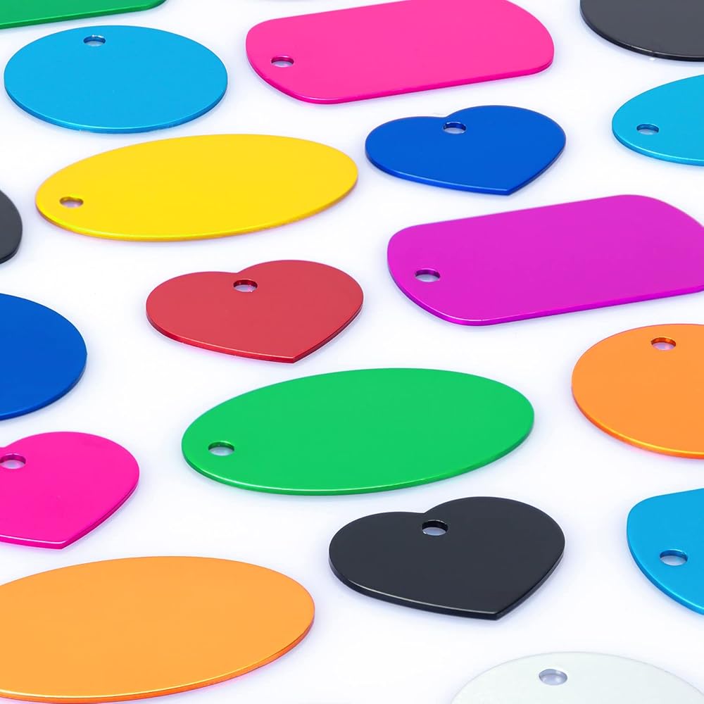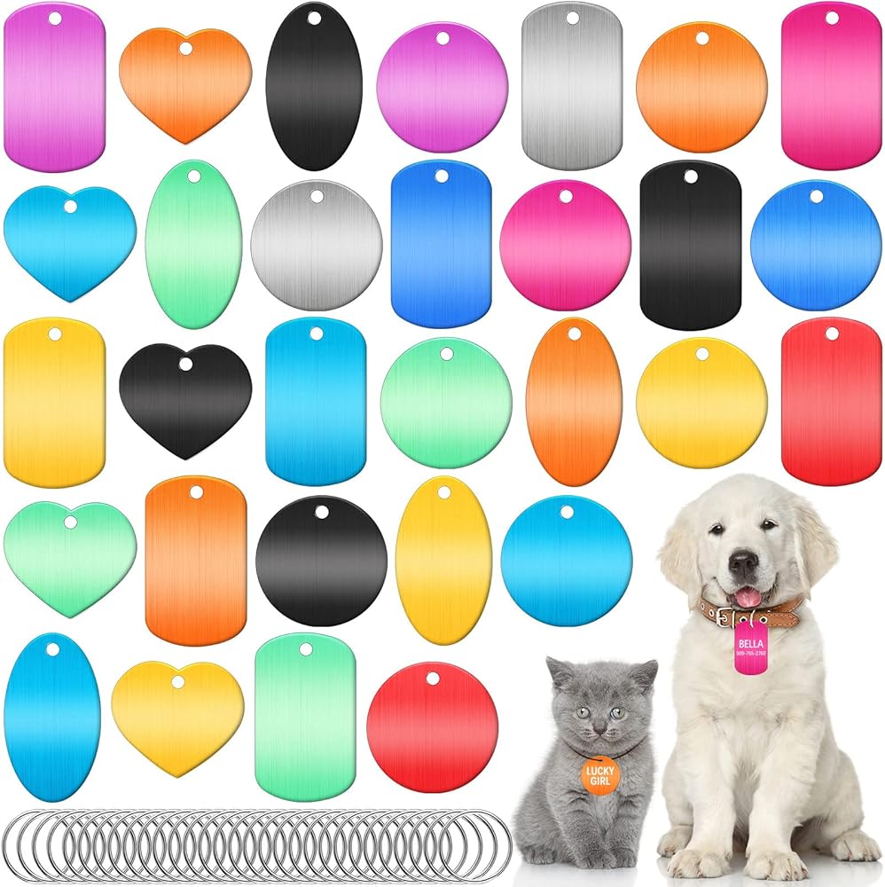 بطاقات تعريف فارغة للحيوانات الاليفة من 30 قطعة من الالومنيوم مع حلقة للحرف اليدوية مع فتحة للحيوانات الاليفة والكلاب والقطط ورقم الهاتف (دائرية، مستطيلة، بيضاوية، قلب)