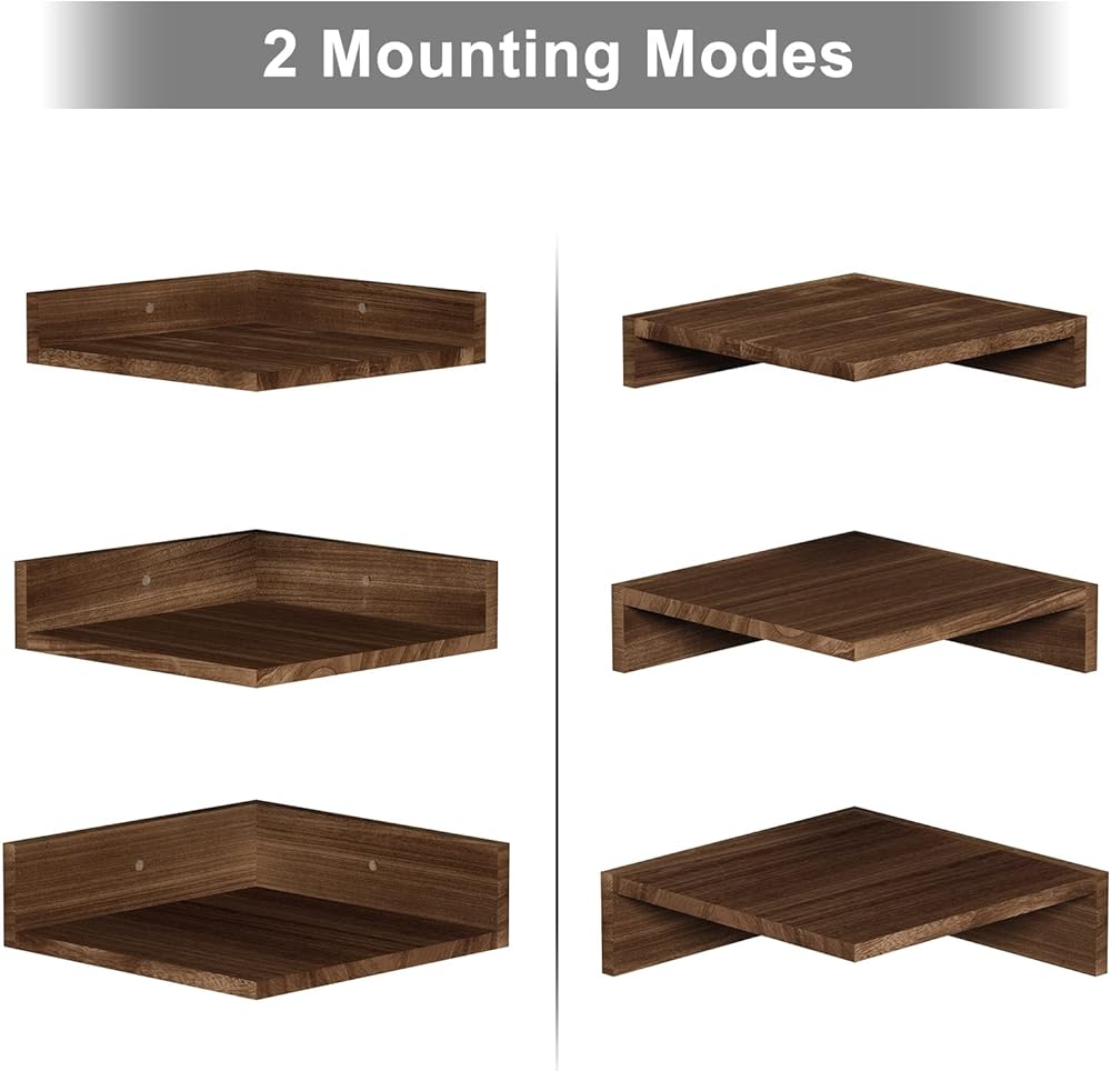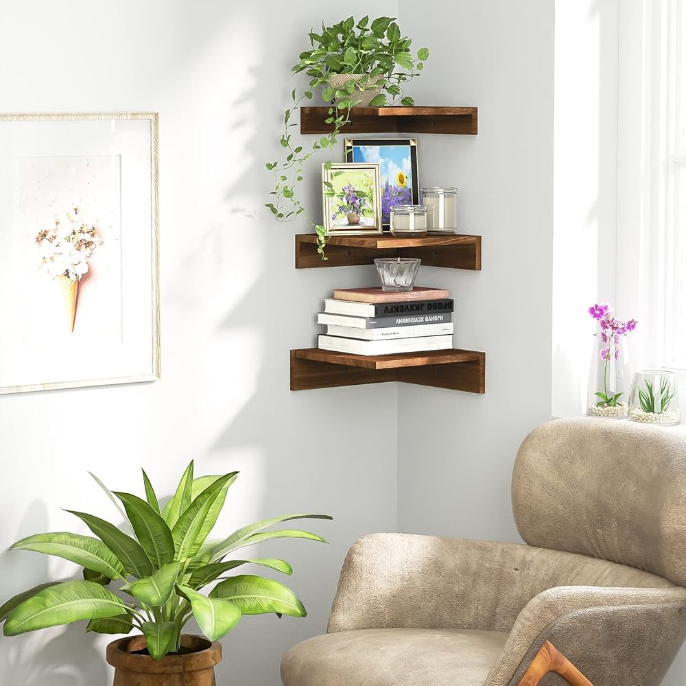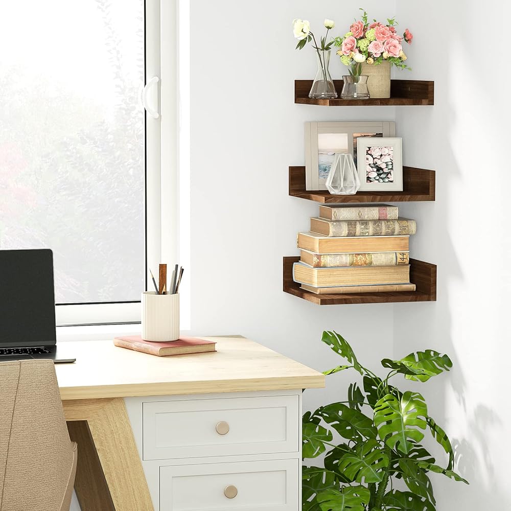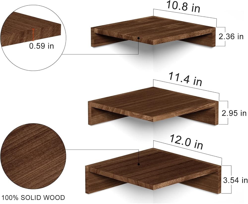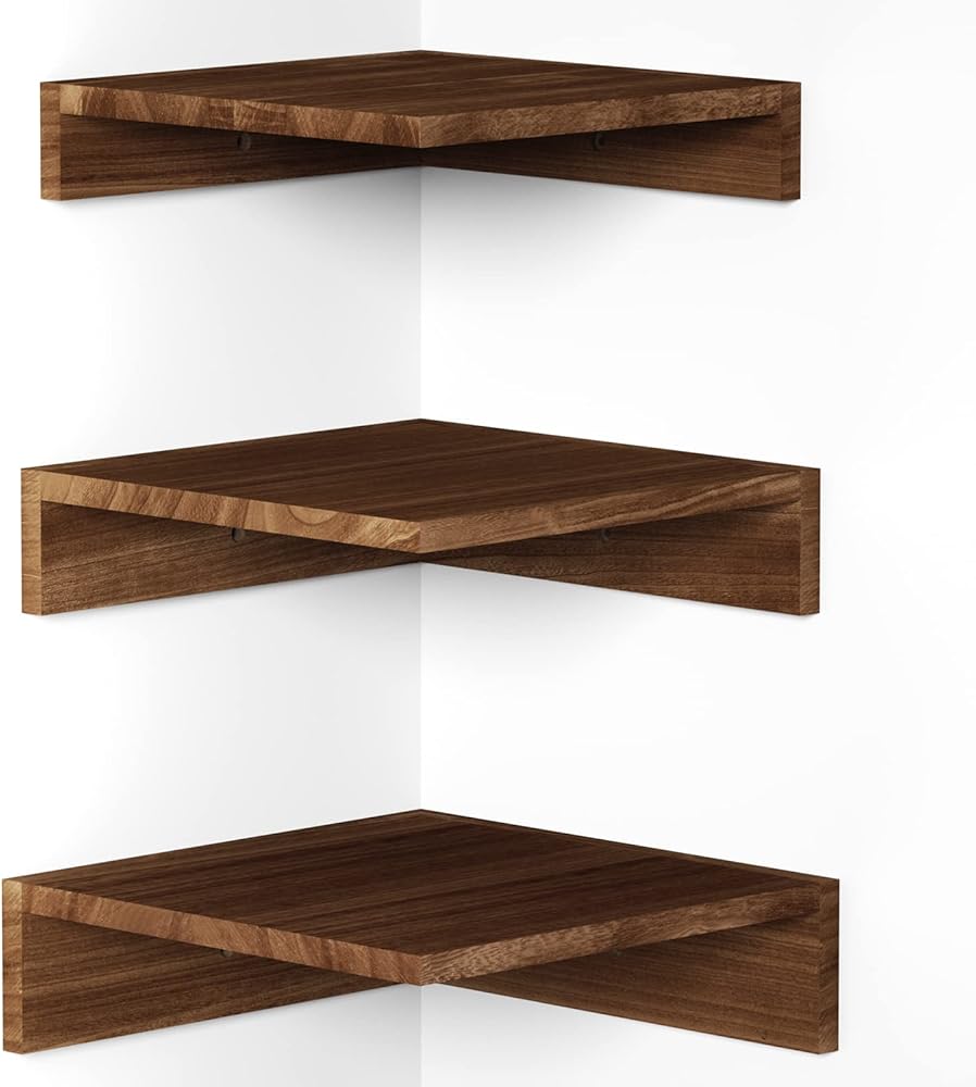 الرف الجدران في سريواتانا الزاوية ، أرفف زاوية عائمة مثبتة على الحائط ، أرفف زاوية خشبية ريفية مجموعة من 3 غرفة نوم ، مطبخ (بني داكن)