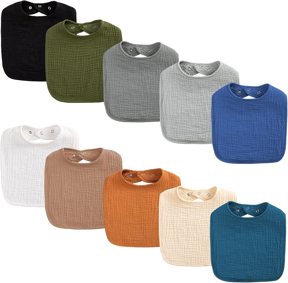 10 عبوات من المرايل على شكل حرف U: هناك 10 عبوات من مرايل الأطفال المصنوعة من الموسلين، الكثير منها في مجموعة متنوعة من الألوان لتناسب استخدام طفلك واحتياجاته المتغيرة؛ يبلغ مقاس كل مريلة حوالي 30 × 21 سم/ 11.81 × 8.27 بوصة، مناسبة للأطفال بعمر 6 أشهر فما فوق.