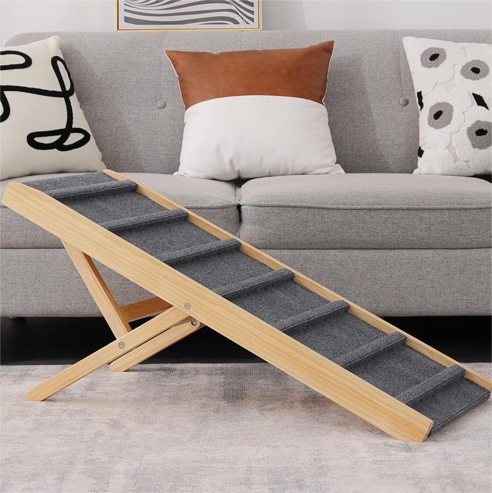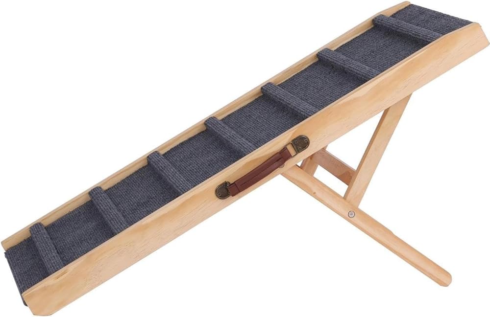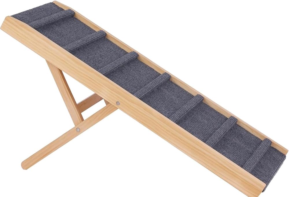 1.This pet dog ramp stair is made from pine wood and a durable carpet material, providing a safe and easy way for your pets, including dogs, cats, and other animals, to access high surfaces such as a car, couch, bed, or sofa. Enjoy spending time together as a family in the great outdoors.