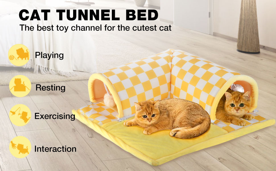 【سرير نفق القطط متعدد الوظائف】يمكن لقططنا اللعب والمطاردة والراحة والنوم والاختباء والبحث بسعادة في نفق القطط، الذي يحتوي على وسادة ناعمة ونفق ولعبة كرة، إنه مزيج مثالي من سرير القطط واللعبة والنفق.