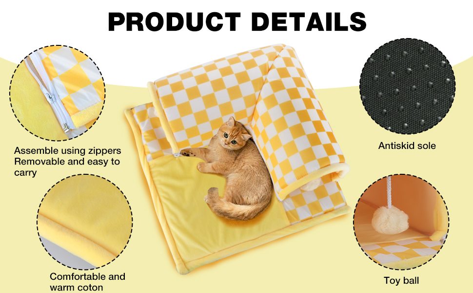 【سهل التخزين والحمل】يمكن تفكيك سرير النفق هذا وطيه من خلال السحاب، وهو سهل التخزين أو الحمل في الهواء الطلق للقطط.