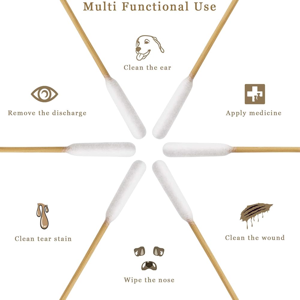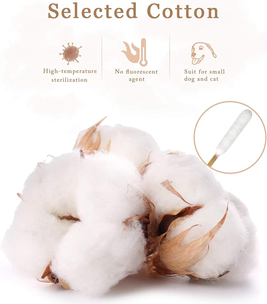 آمن - ليونة ونعومة عصا الخيزران مع براعم القطن الطويلة الثابتة تحترم الجلد والمخاط للقناة السمعية. لن تؤذي كلبك الأليف.