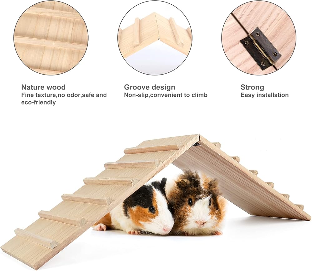❉【إطار تسلق مصنوع من مادة طبيعية】: المادة الرئيسية لهذا الجسر هي جذوع الأشجار ذات لون الخشب الطبيعي والمظهر الجميل. مواد وصناعة رائعة يمكن أن تحمي أقدام خنزير غينيا الحساسة أثناء المشي صعودًا وهبوطًا على المنحدر. لعبة خشبية آمنة وصديقة للبيئة بدون رائحة، أكثر ملاءمة لحيواناتك الأليفة الجميلة.
