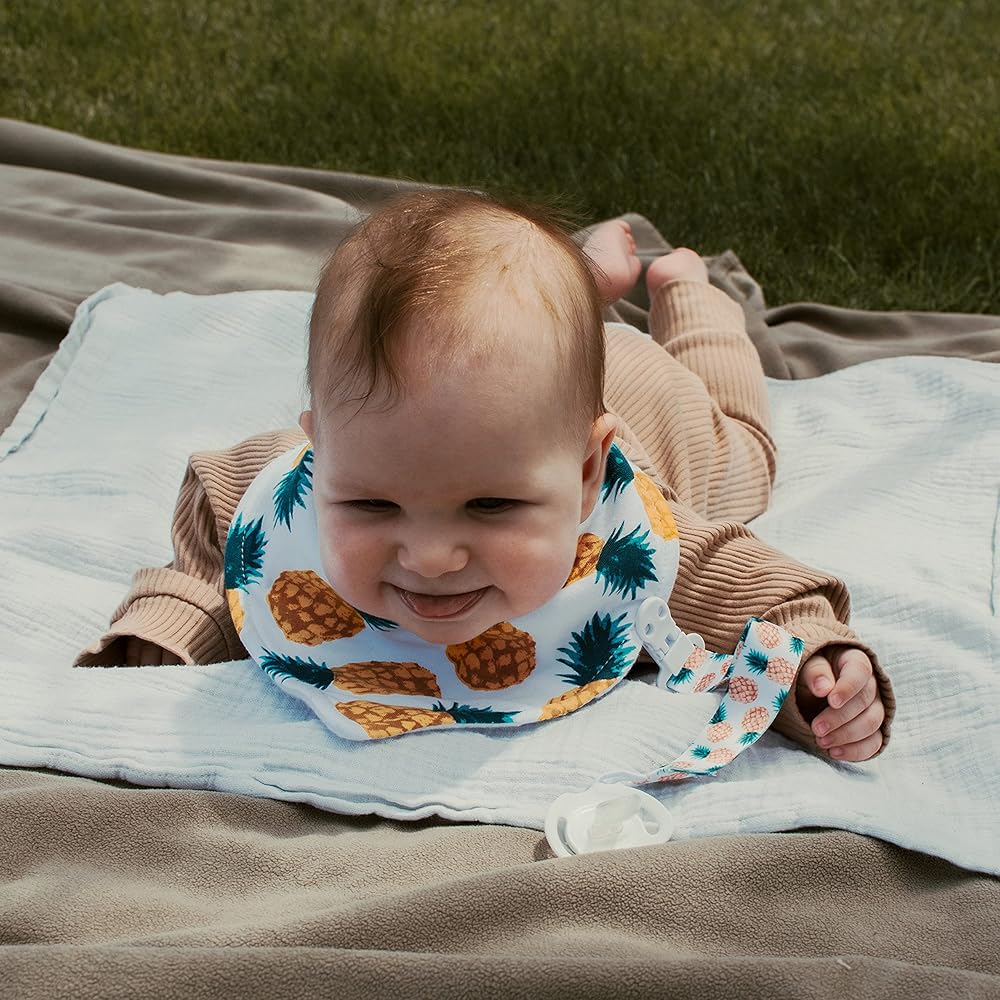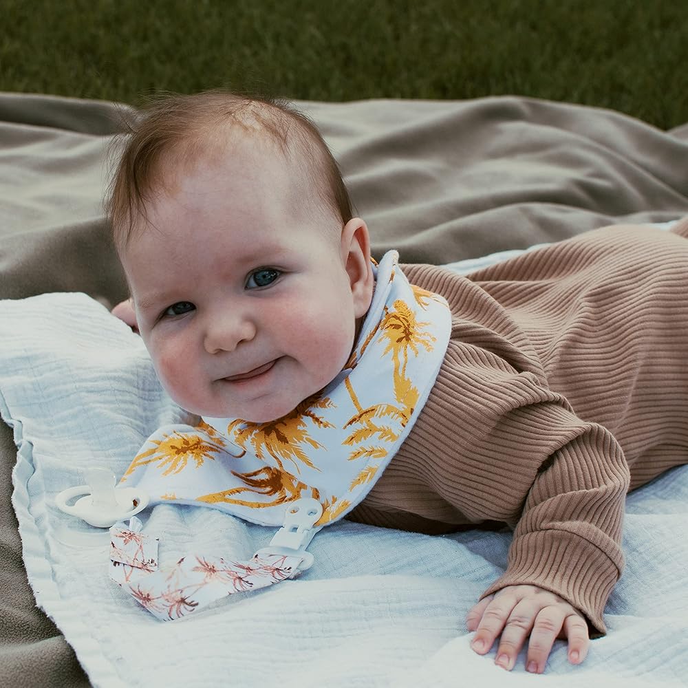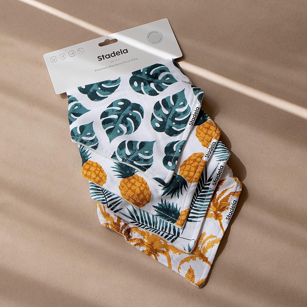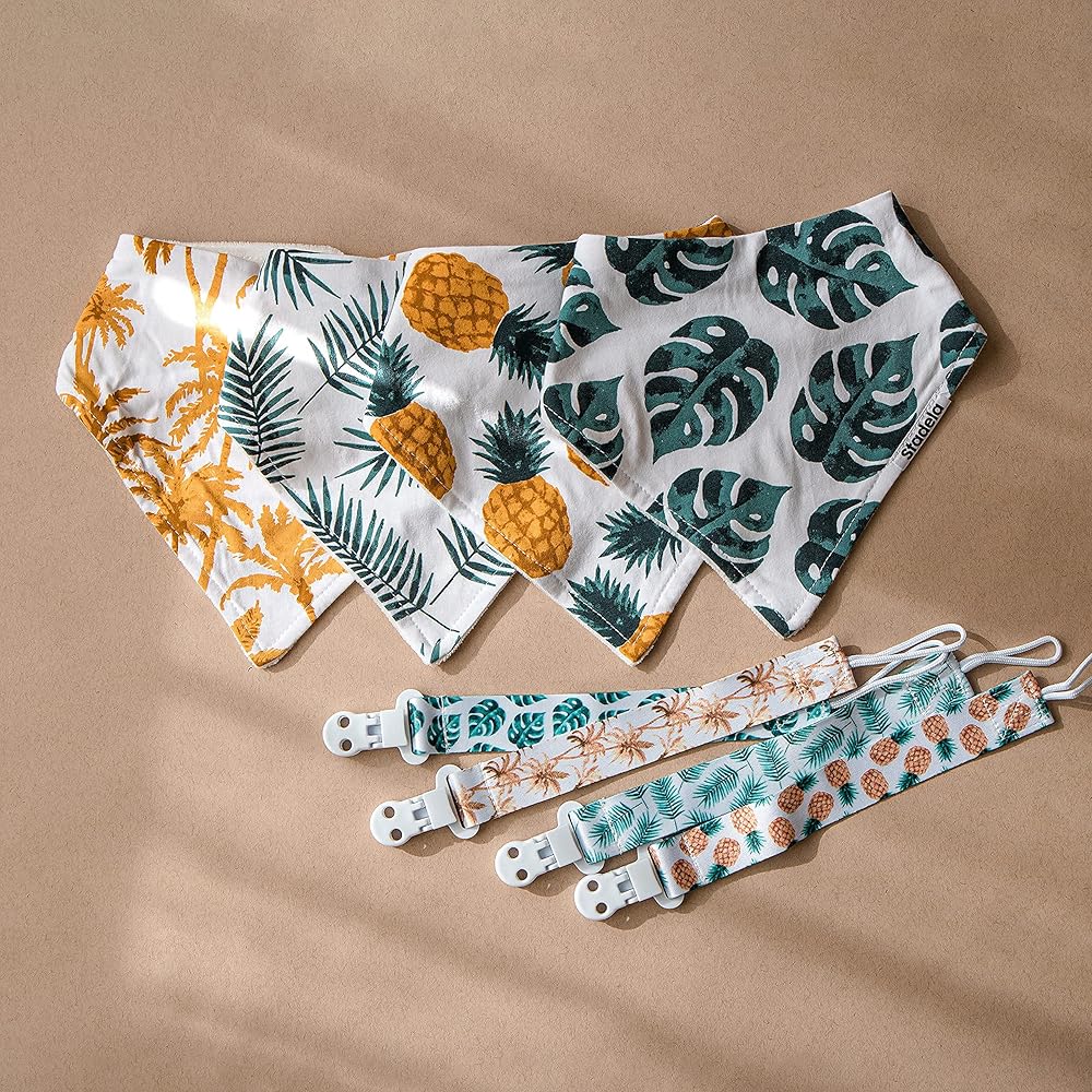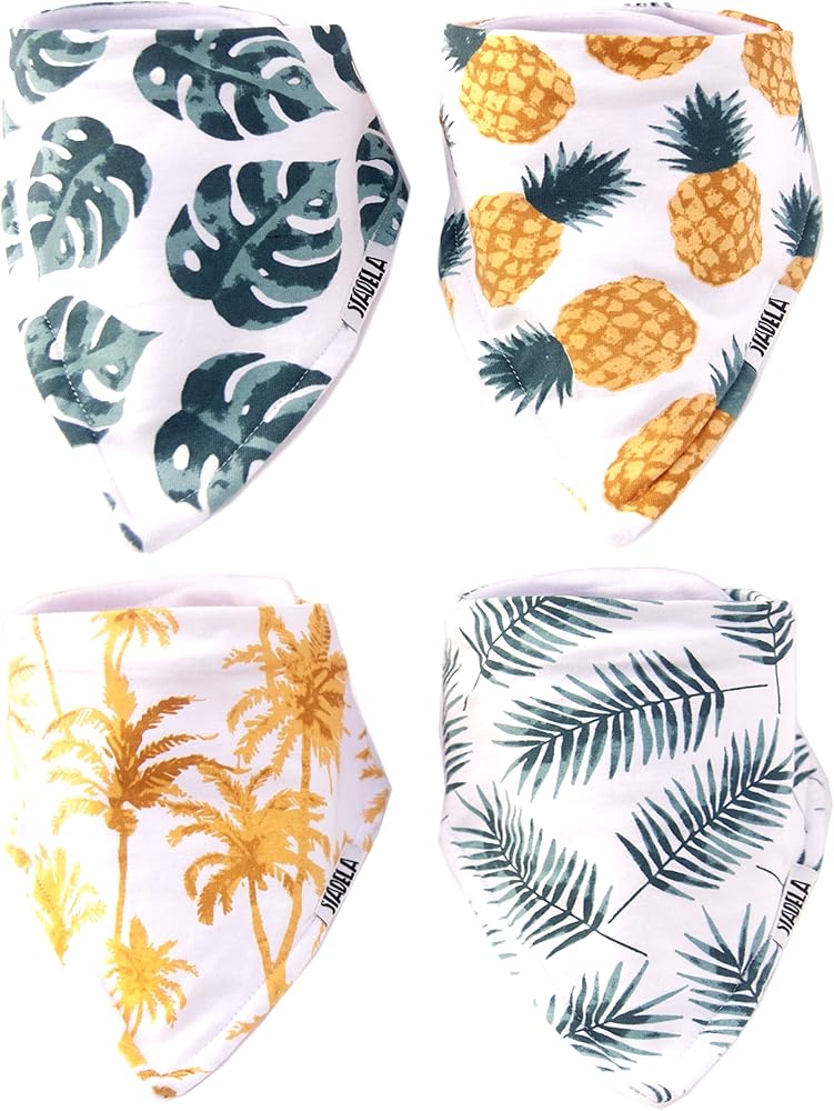 مريلة أطفال من ستاديلا قابلة للتعديل لسيلان اللعاب ولحضانة التسنين، 4 عبوات للجنسين مجموعة هدايا استحمام الطفل للبنات والأولاد - بالم تروبيكال ليف هاواي تزلج على الشاطئ في الصيف