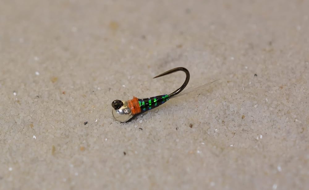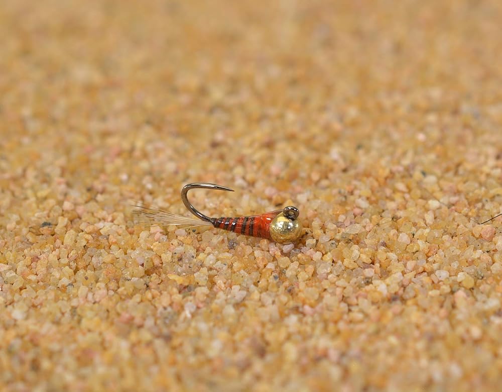 The jig fly is a formula that works. The Tungsten bead gets the fly into the feeding lane quicker, the hook ride up so you can feel the bottom without getting snagged. It also allows for a better hook set as you will hook your fish.