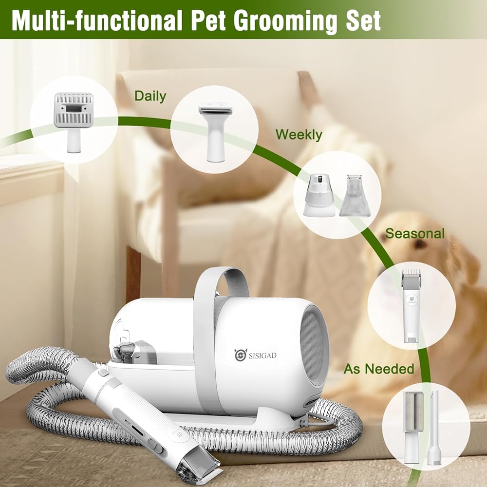 مجموعة العناية بالحيوانات الأليفة الاحترافية: 7 أدوات للعناية بالحيوانات الأليفة توفر نتائج على المستوى الاحترافي سواء تشذيب شعر حيوانك الأليف أو تقليم أظافر حيوانك الأليف، يمكن لرأس الفوهة وفرشاة التنظيف تنظيف شعر الحيوانات الأليفة على الأرائك والسجاد.