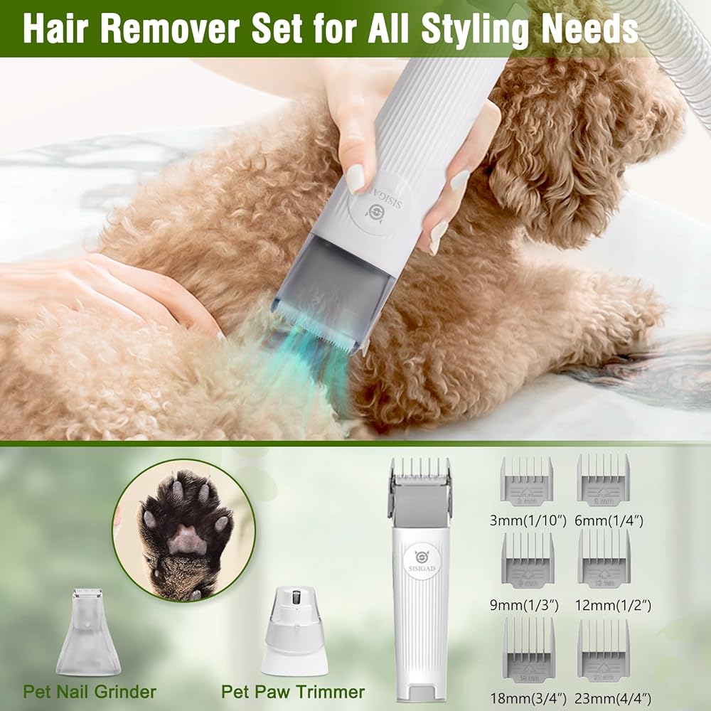 شفط 99% من شعر الحيوانات الأليفة: لا تدع شعر الحيوانات الأليفة يسيطر على منزلك باستخدام أدوات الحلاقة المنزلية التقليدية. يمكن لمجموعة أدوات العناية بالحيوانات الأليفة القابلة للتفريغ جمع 99% من شعر الحيوانات الأليفة في حاوية مفرغة عند تنظيف حيوانك الأليف. لا مزيد من شعر الحيوانات الأليفة المتطاير في المنزل.
