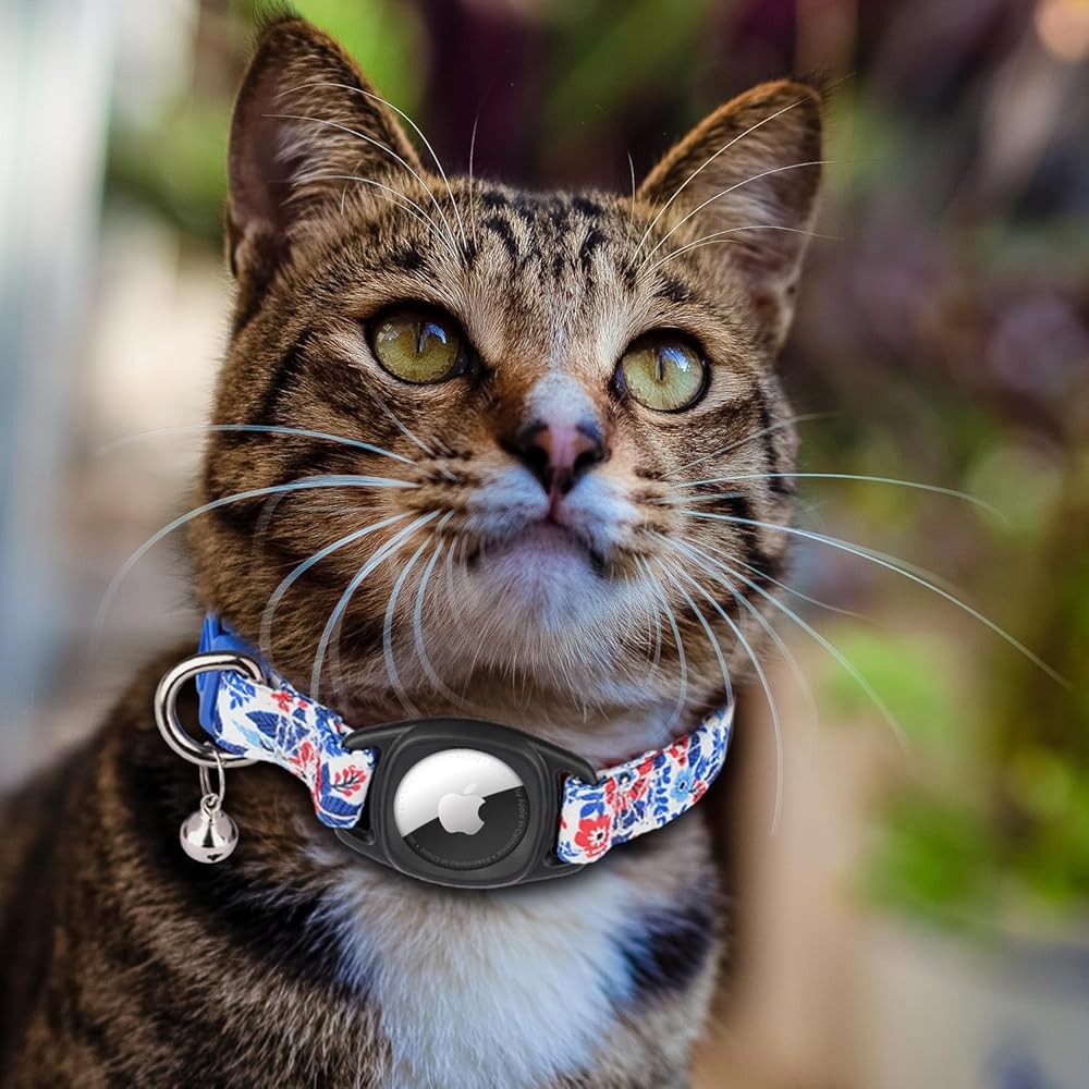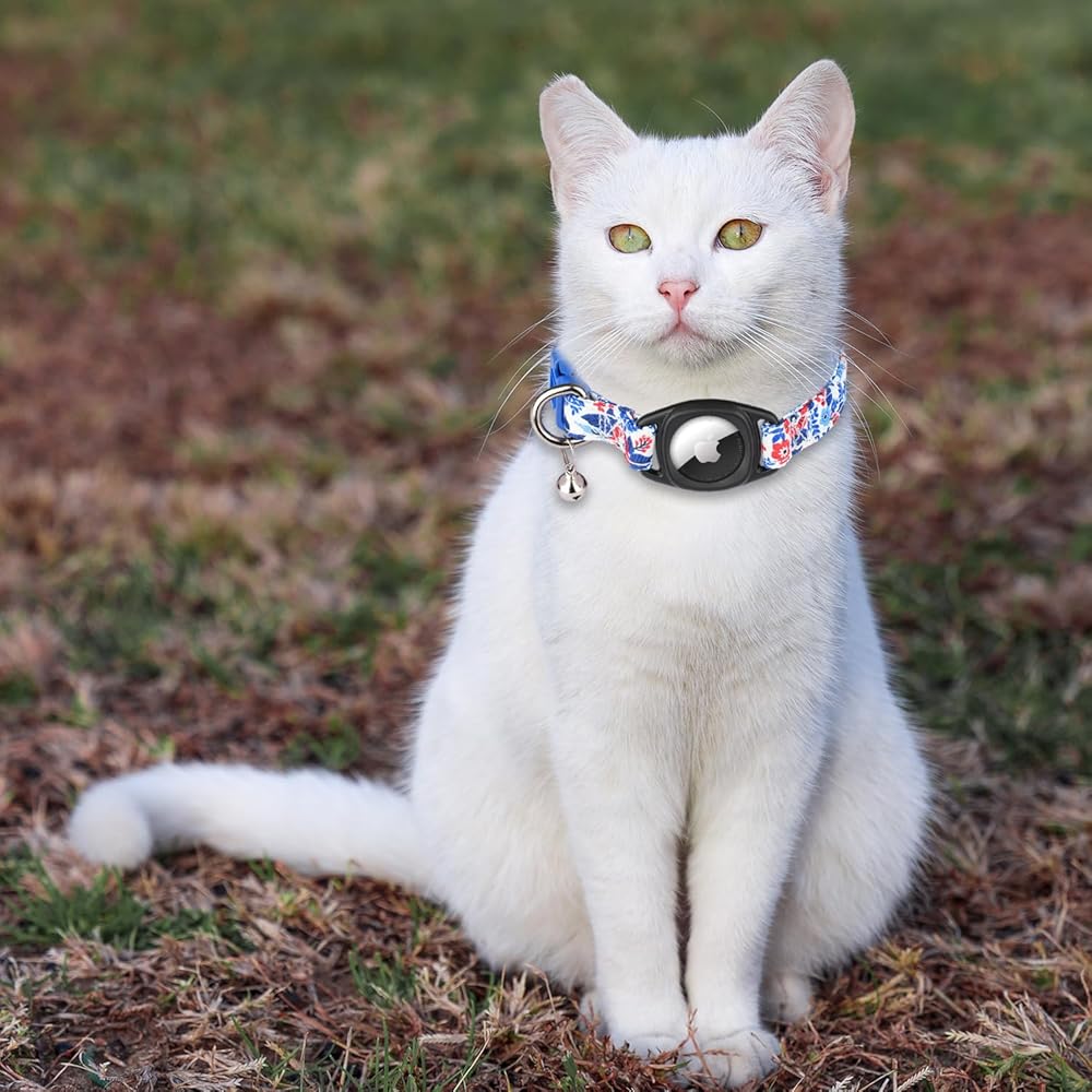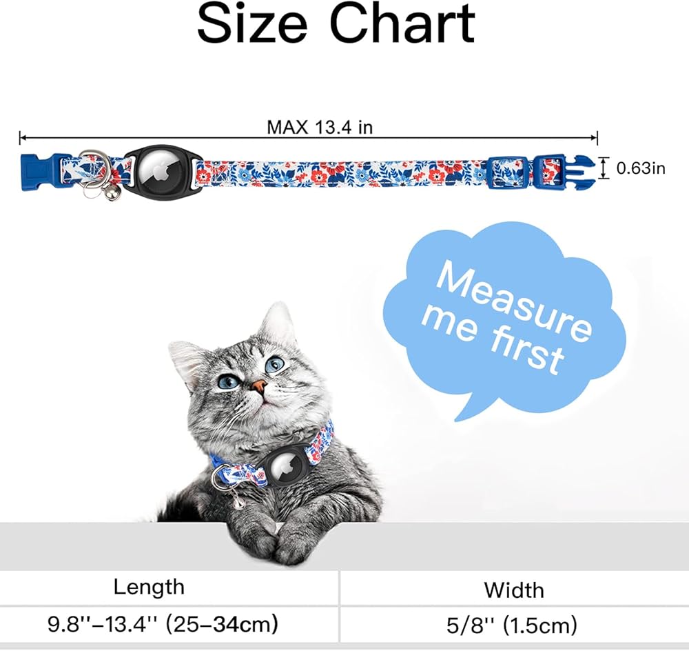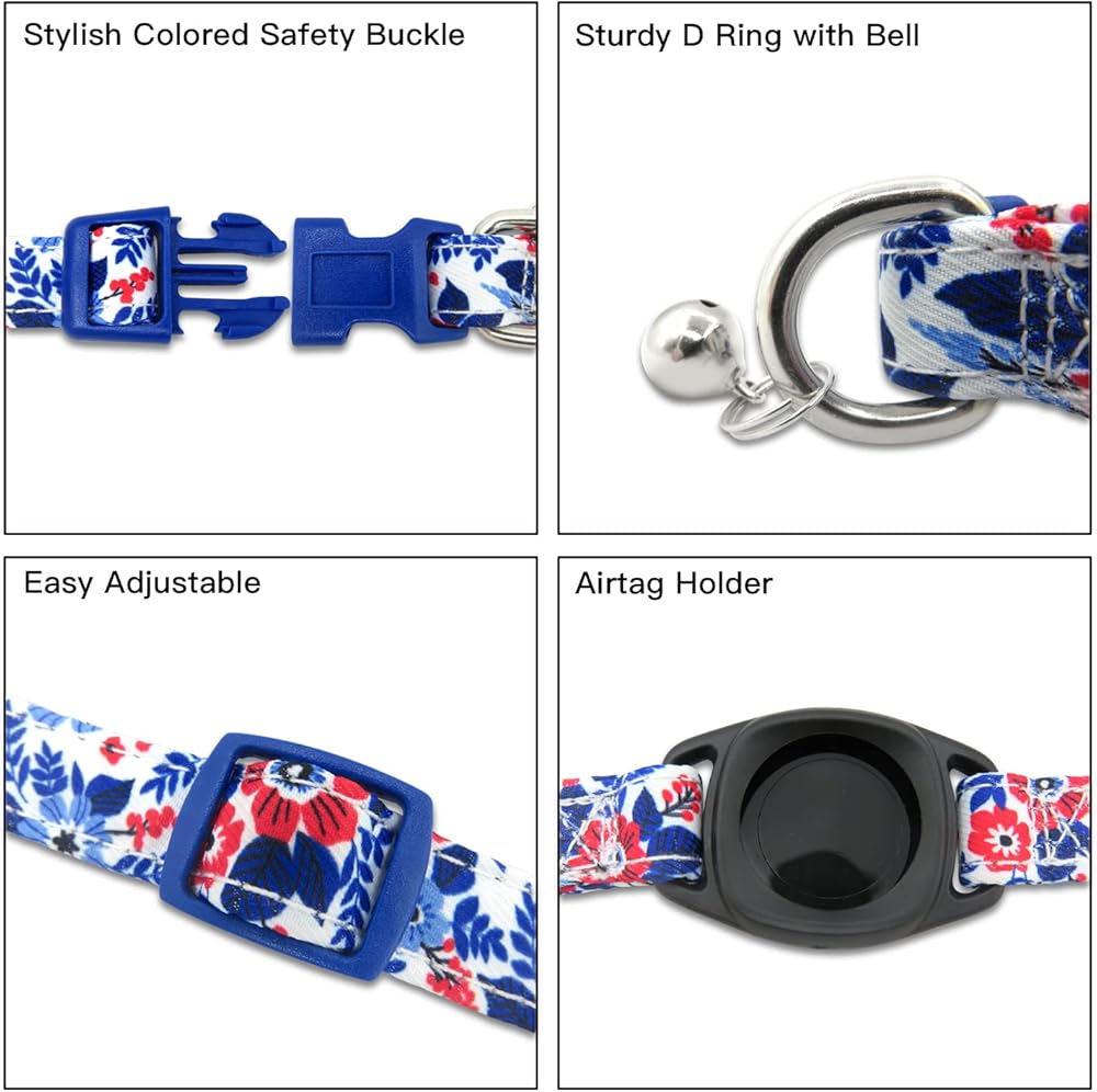 【Stylish & Comfy Cat Collars with Airtag Holder】This airtag cat collar have 4 beautiful patterns design, and with a detachable airtag holder. So you can have two mode of using this cat collars. Each floral pattern is unique and different. It will looks elegant on your cat, kitty and even puppy.