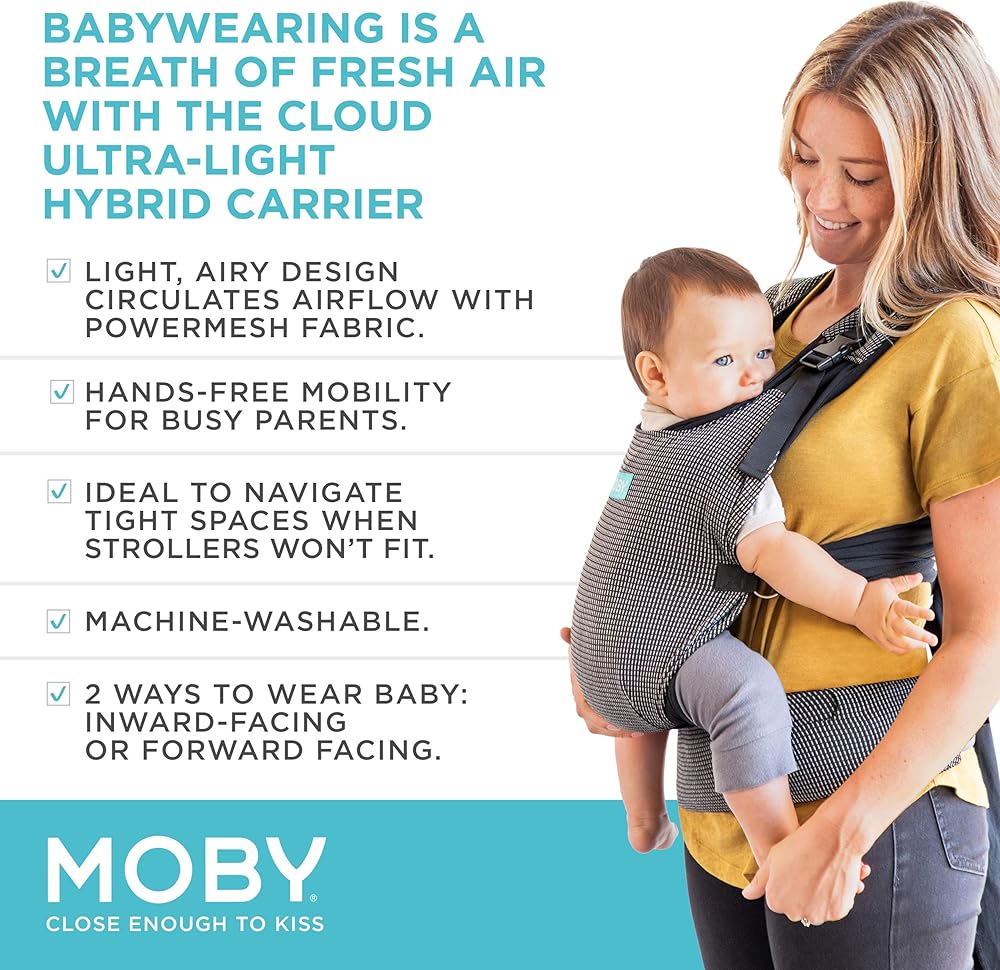 حامل هجين خفيف الوزن للغاية من موبي كلاود | حاملة الأطفال للأمهات والآباء ومقدمي الرعاية | حاملة الأطفال حديثي الولادة إلى الأطفال الصغار | يمكن لحامل الأطفال حمل الرضع حتى وزن 33 رطلاً | خفيف الوزن | إرتفاع عالى