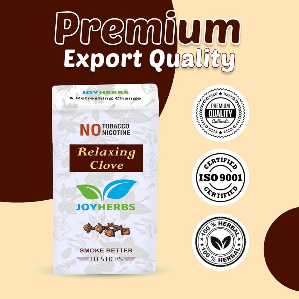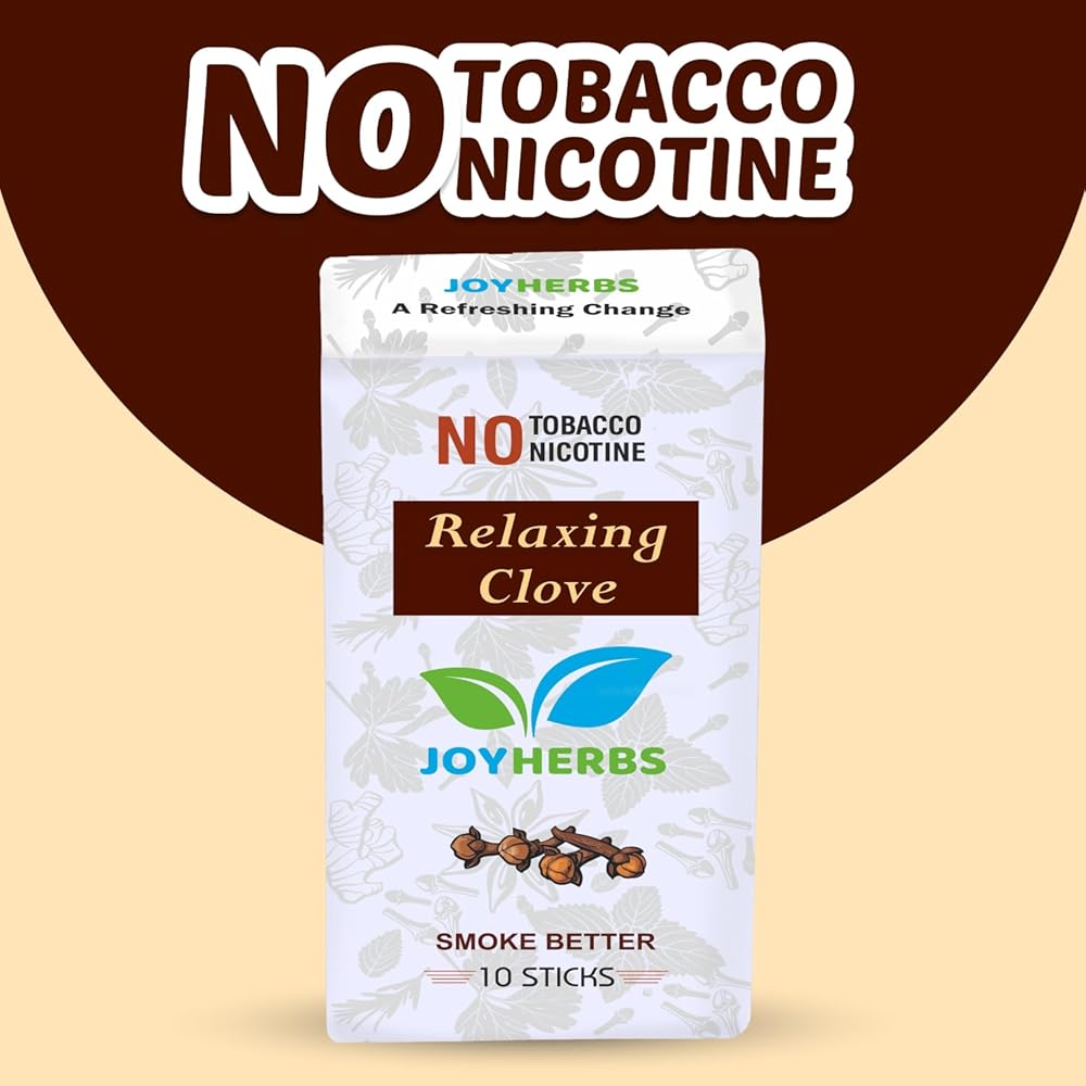 JOYHERBS Ayurvedic Herbal Cigarettes are 100% Tobacco free and Nicotine free. These are made with fine ayurvedic and natural herbs like clove, tulsi or holy basil, cinnamon, mulethi and green tea. It is 100% natural, chemical free and additives free. It contains no artificial colour. It is non addictive (Made in India) product.