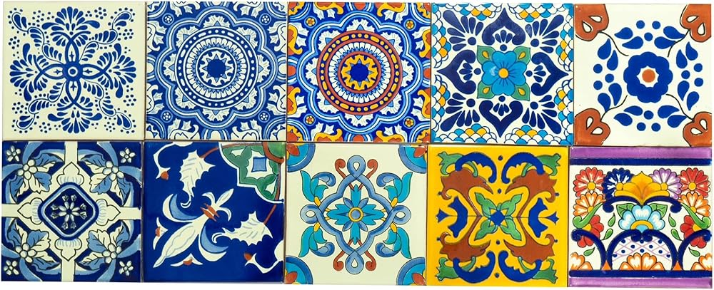 • 15 Mexican Tile mix set. Each Tile is aprox. 1/4 of an inch thick.