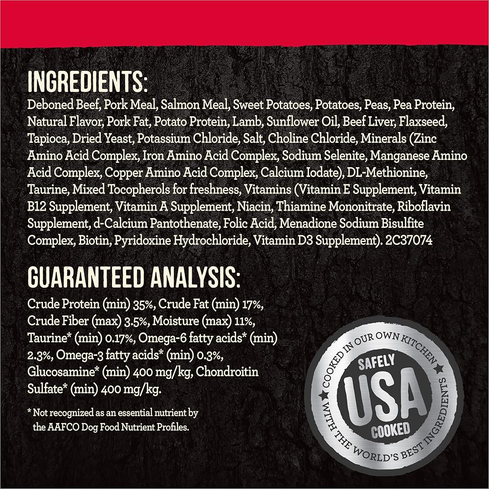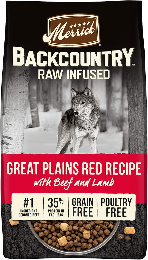 ميريك وصفة طعام الكلاب من باك كونتري مع لحم الضأن والخنزير البري ولحم الغزال بالإضافة إلى الفيتامينات والمعادن والتوراين