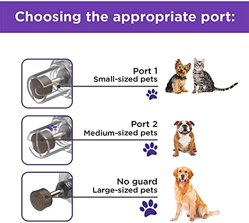للقطط والكلاب من جميع الأحجام: واقي الصقل مجهز بفتحة صغيرة للأظافر الصغيرة وفتحة أكبر للأظافر المتوسطة، أو يمكنك إزالة الواقي بالكامل للاستخدام على الأظافر الكبيرة