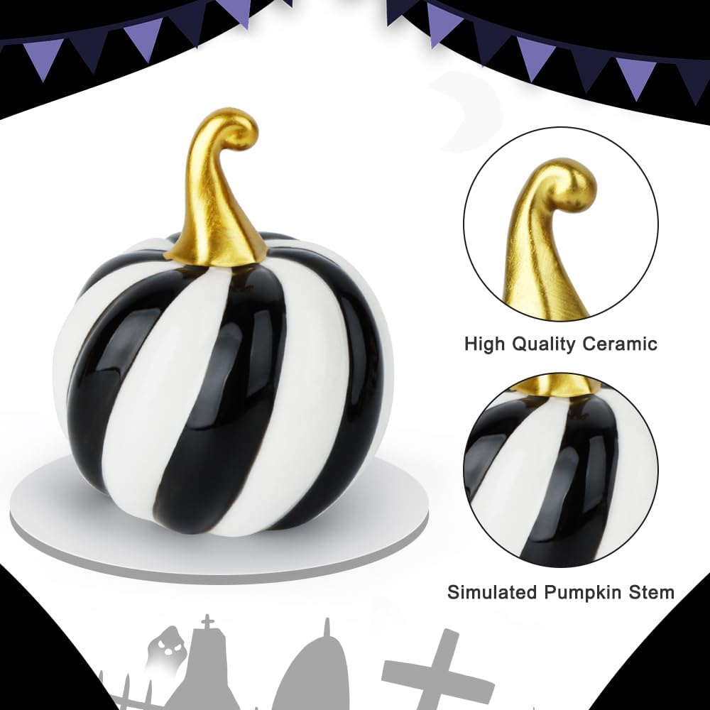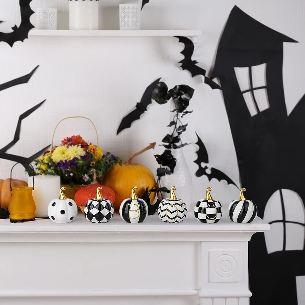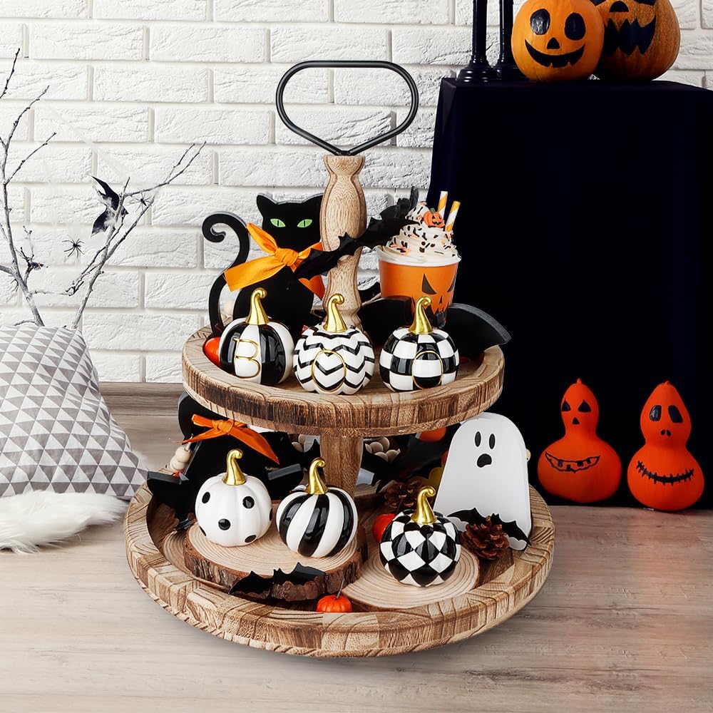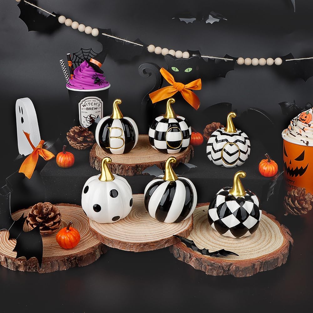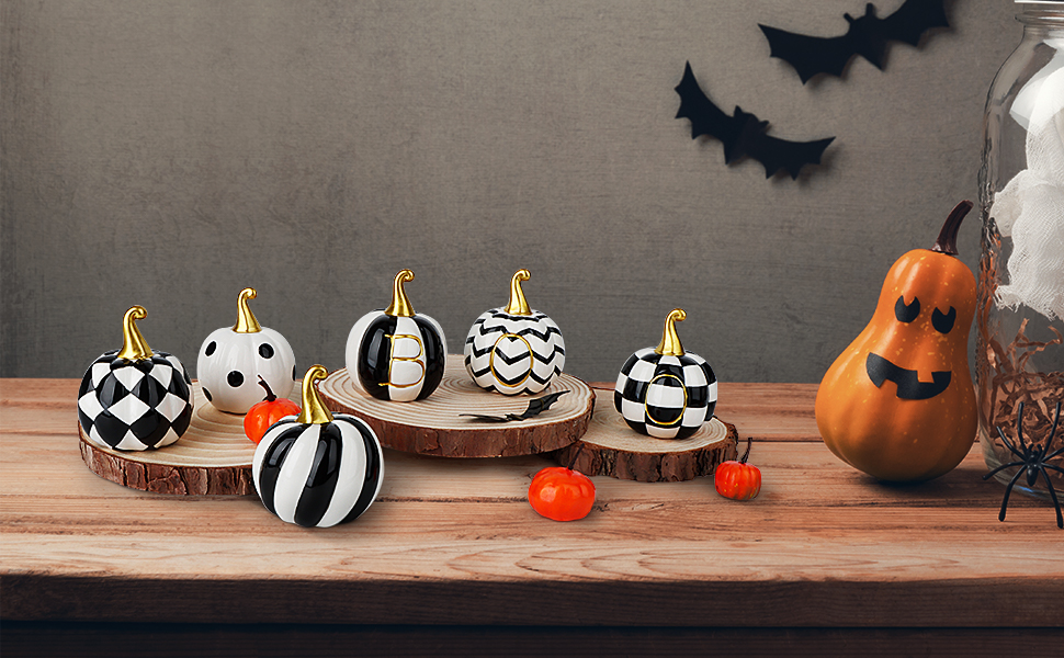6 قطع من القرع الخزفي لديكور الهالوين، قرع بوو باللونين الأبيض والأسود للطاولة، وصينية متدرجة، وتزيين المكتب والرف - ديكورات الهالوين الداخلية للمنزل