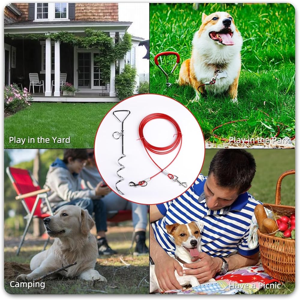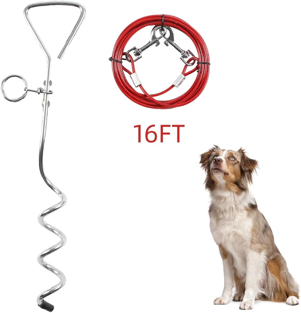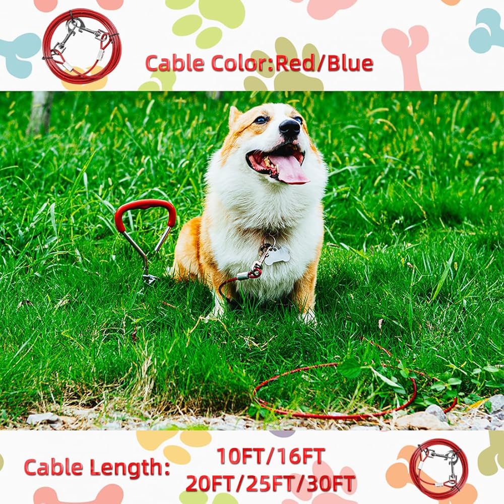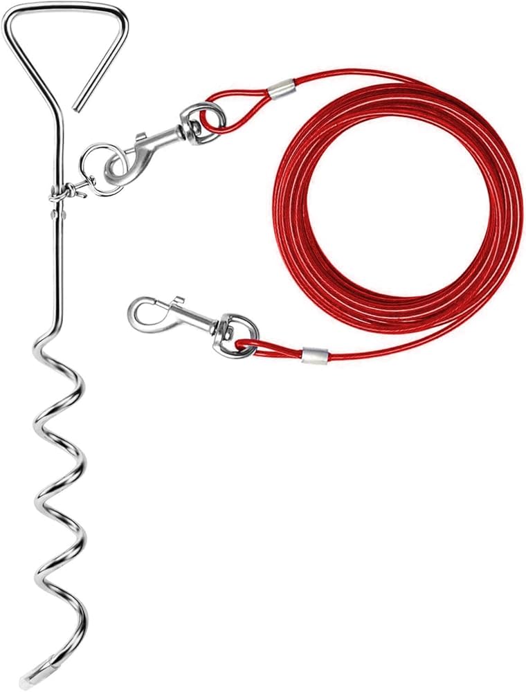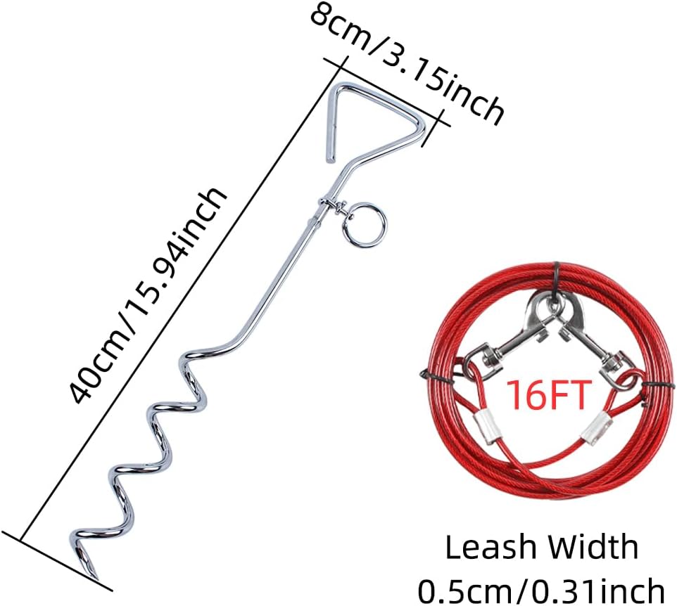 حافظ على الأمان: الوتد الحلزوني للكلاب مصنوع من عملية طلاء بالكروم من الفولاذ الكربوني فائق الصلابة للحفاظ على عصا الوتد ثابتة على الأرض. يحتوي كابل الربط على حلقة دائرية يمكن تدويرها بأي زاوية، مما يمنح كلبك مساحة أكبر للنشاط. الكابل حبل مصنوع من فيلم PVC ملفوف بسلك فولاذي لمنع الصدأ.