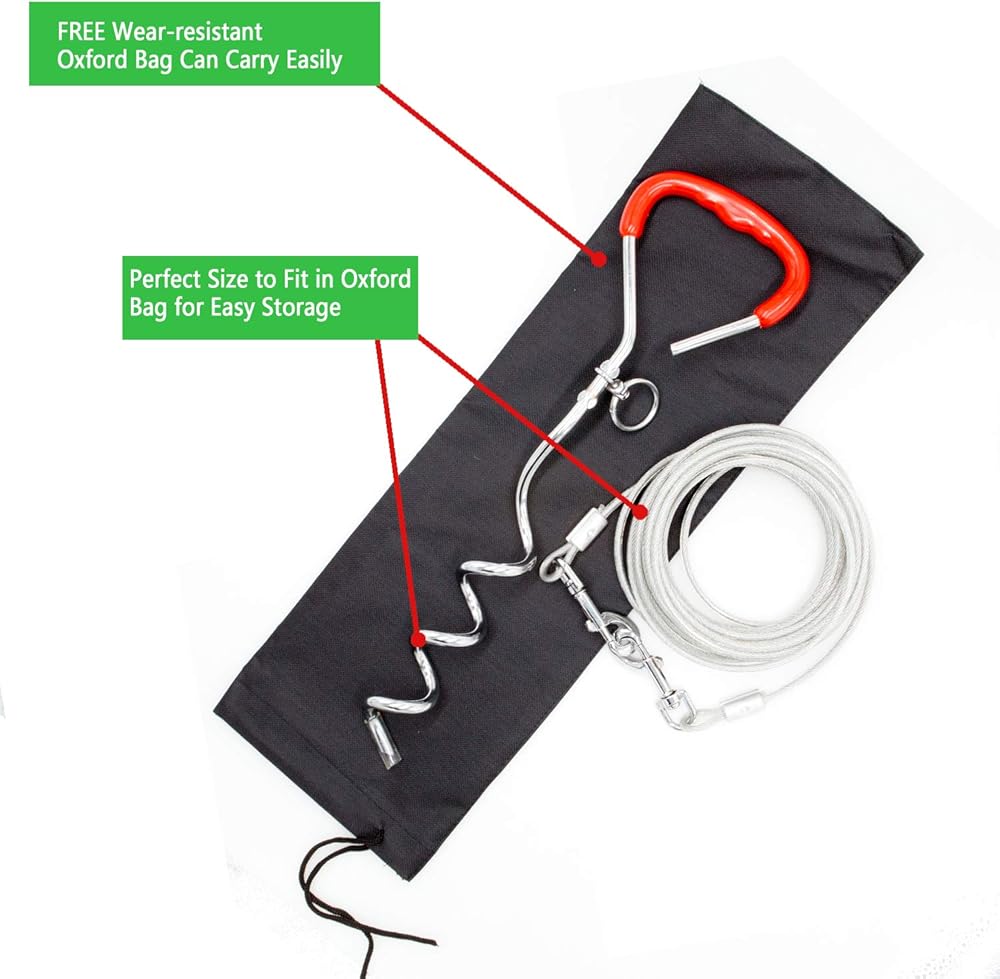 تصميم احترافي مثالي: وتد ربطة عنق الكلب مصنوع من مقبض بزاوية مقوسة، وهو مريح ومريح. حقيبة أكسفورد مقاومة للاهتراء ومقاومة للماء. والجزء السفلي من الوتد يعتمد هيكل حلزوني ميكانيكي لحفر الأرض، والذي له تأثير قبضة قوي. لا داعي للقلق بشأن سحب الكلب للخارج. الحبل الفولاذي يمكن تدويرها بمقدار 360 درجة لمنع ربط الحبل.