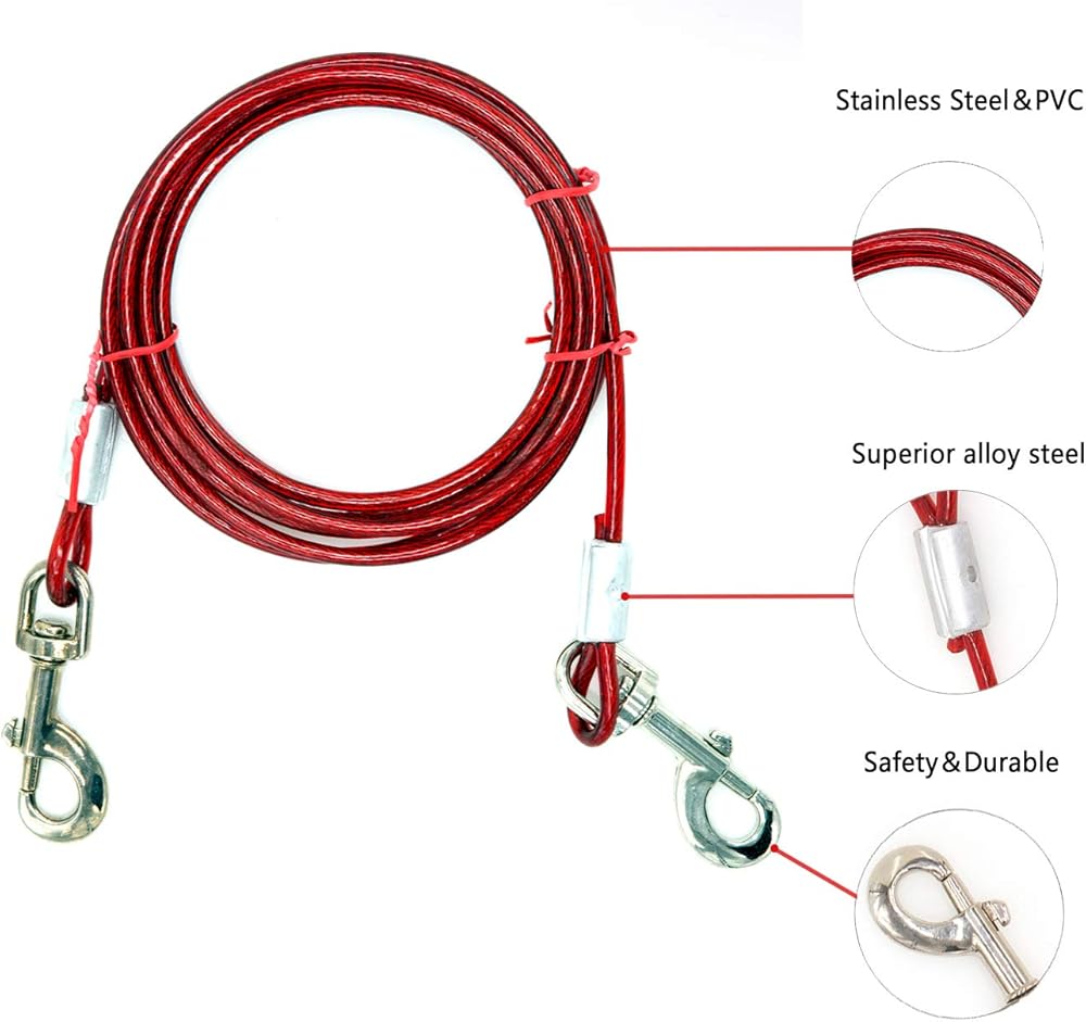 كابل ربط للكلاب وحصة بطول 32/16/10 قدم في الهواء الطلق، وساحة وتخييم، للكلاب المتوسطة والكبيرة التي يصل وزنها إلى 125 رطلاً، وحصة 16 بوصة، ومشغل كبل بطول 32/16/10 قدم مع زنبرك متين وخطاطيف معدنية للأماكن الخارجية (16 قدمًا) ،أحمر)