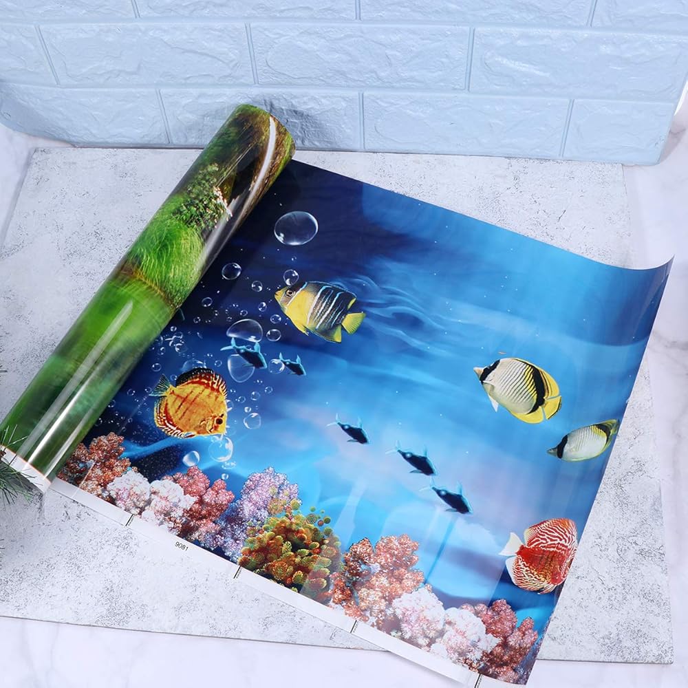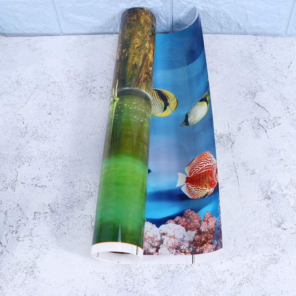 خلفية حوض السمك ثلاثية الأبعاد، مناسبة: أي جدار أملس نظيف، بلاط، نوافذ، معدن، خزانة، بلاستيك.