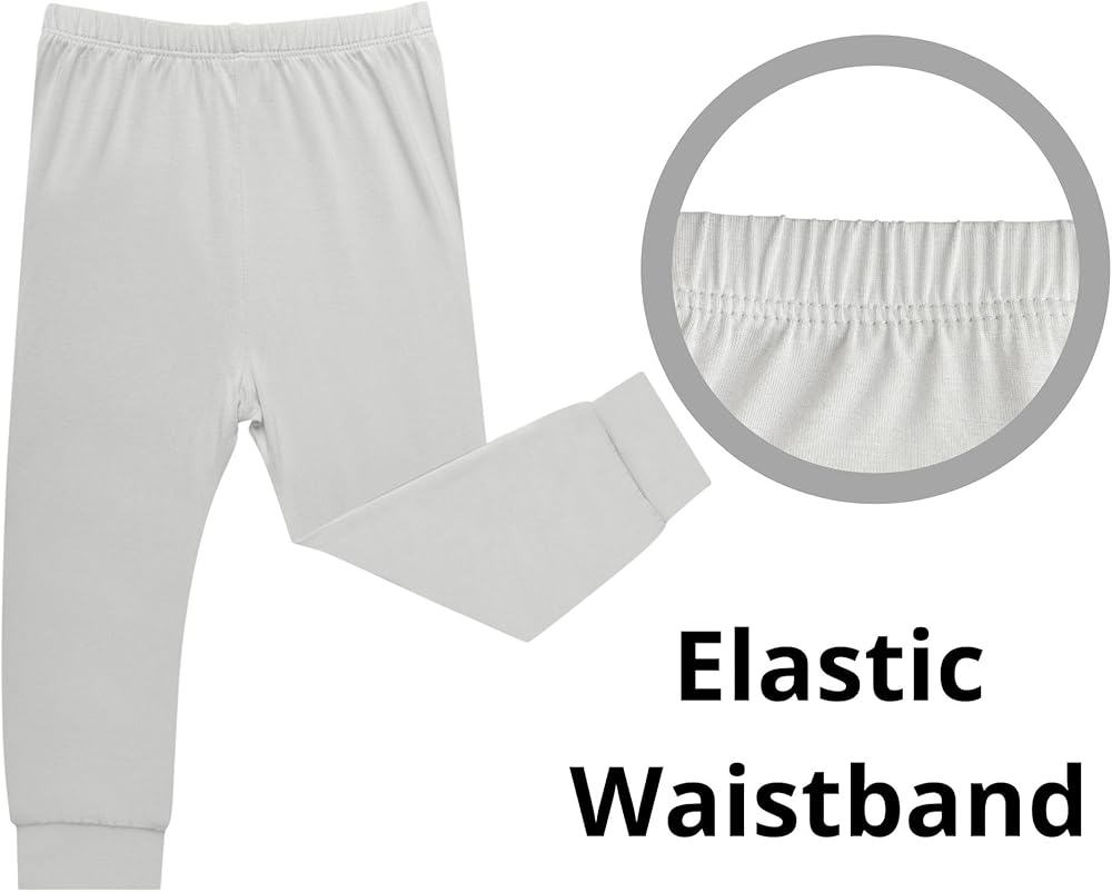 سراويل الأطفال الخاصة بنا مصنوعة من 95% رايون مصنوع من الخيزران و5% ألياف لدنة فائقة النعومة ولطيفة على بشرة طفلك، وهي اختيار مثالي لوقت اللعب أو القيلولة أو مجرد التسكع.