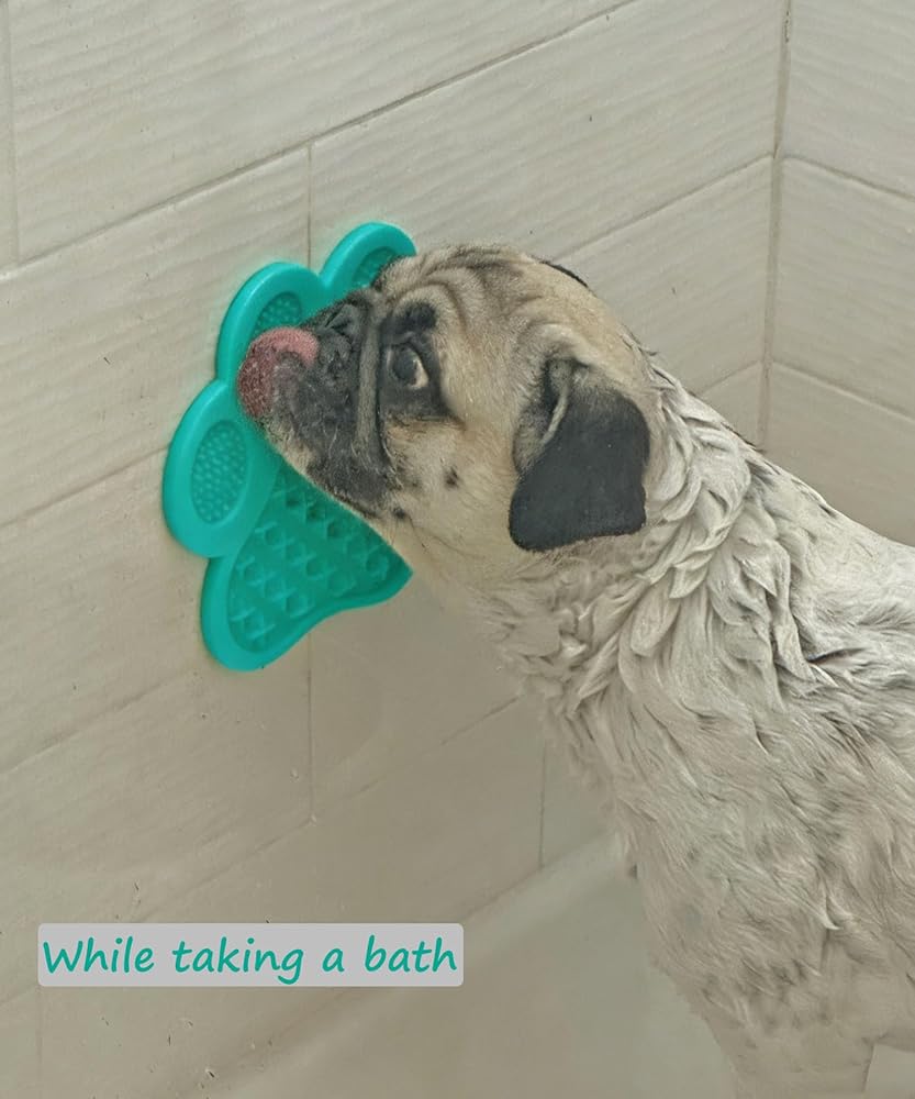 سهلة الاستخدام: قم ببساطة بتوزيع زبدة الفول السوداني أو المكافآت المعتمدة لكلبك على السجادة ولصقها على حوض الاستحمام أو المنضدة أو أي سطح أملس.
