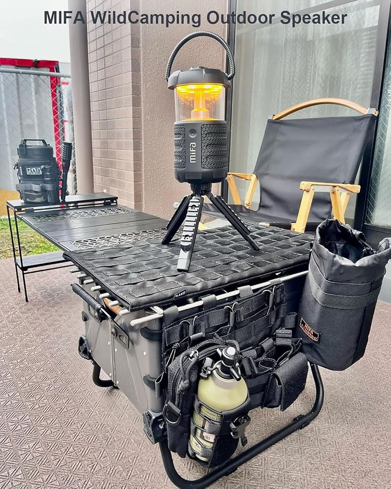 مكبر صوت MIFA للتخييم قابل لإعادة الشحن، مكبرات صوت بلوتوث محمولة مقاومة للماء مع أضواء LED وفتحة بطاقة Micro SD، هدايا تخييم فاخرة رائعة للرجال والنساء، أسود