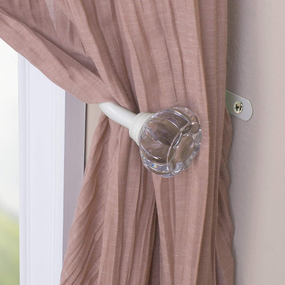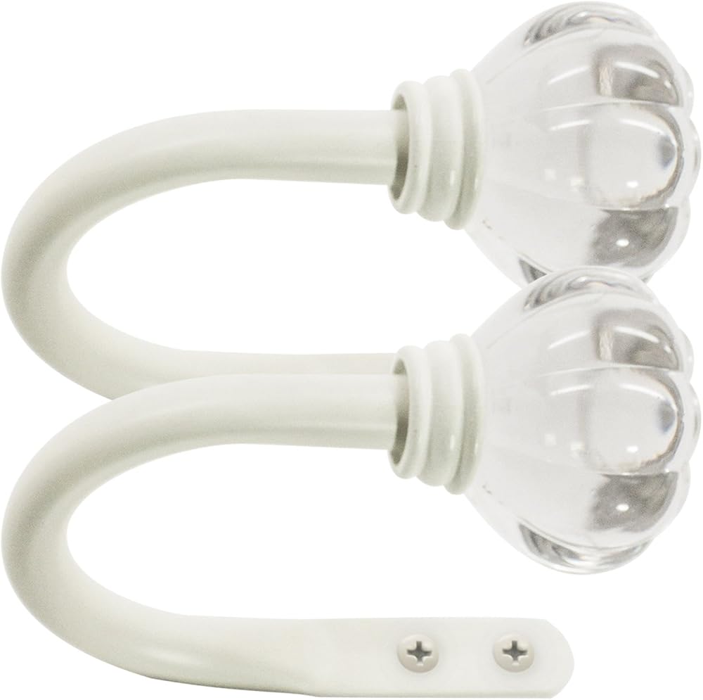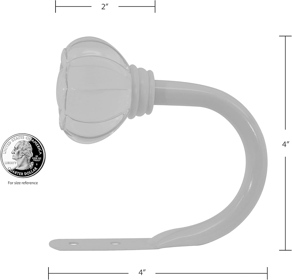 زين غرفة طفلك بهذا الزوج المثبت على شكل تاج. بسيطة وكاجوال وممتعة وتكمل مجموعة متنوعة من أغطية السرير والستائر. تاج شفاف مع ذراع تثبيت أبيض عتيق. أدوات التركيب متضمنة.