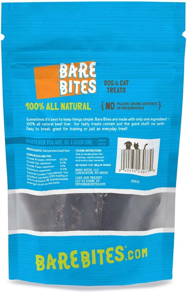 بير بايتس 100% من كبد البقر المجفف الطبيعي للكلاب والقطط، 3 أونصات