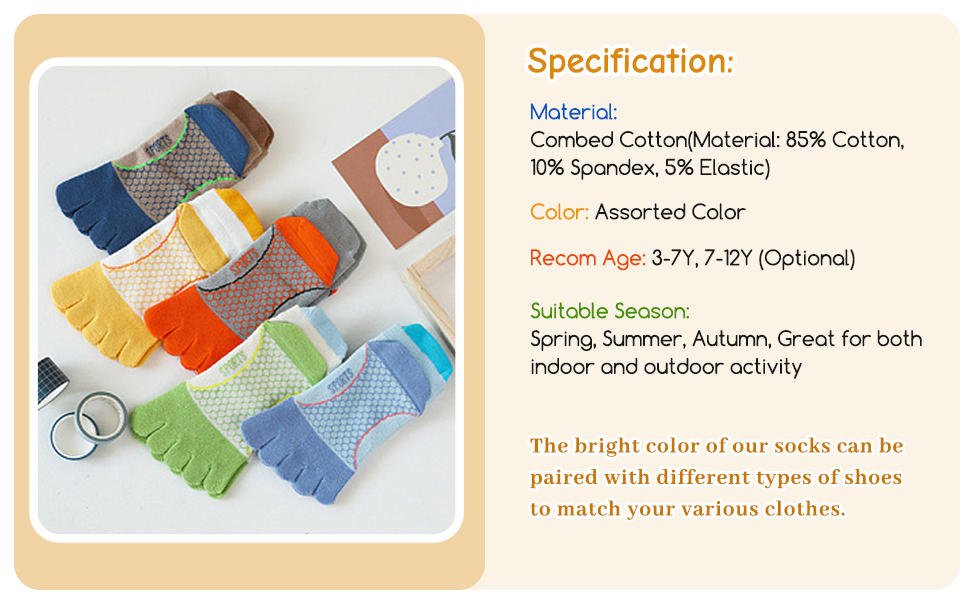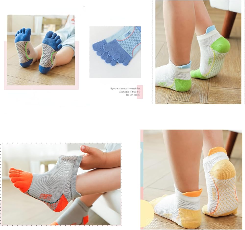 【خامة ناعمة مسامية عالية الجودة】جوارب للأطفال بخمسة أصابع مصنوعة من قطن عالي الجودة، سباندكس وخيط مرن، ملمس ناعم ومريح. نسيج شبكي يضمن التهوية، ولا يشعر بالاحتكاك بعد ارتدائه لفترة طويلة.